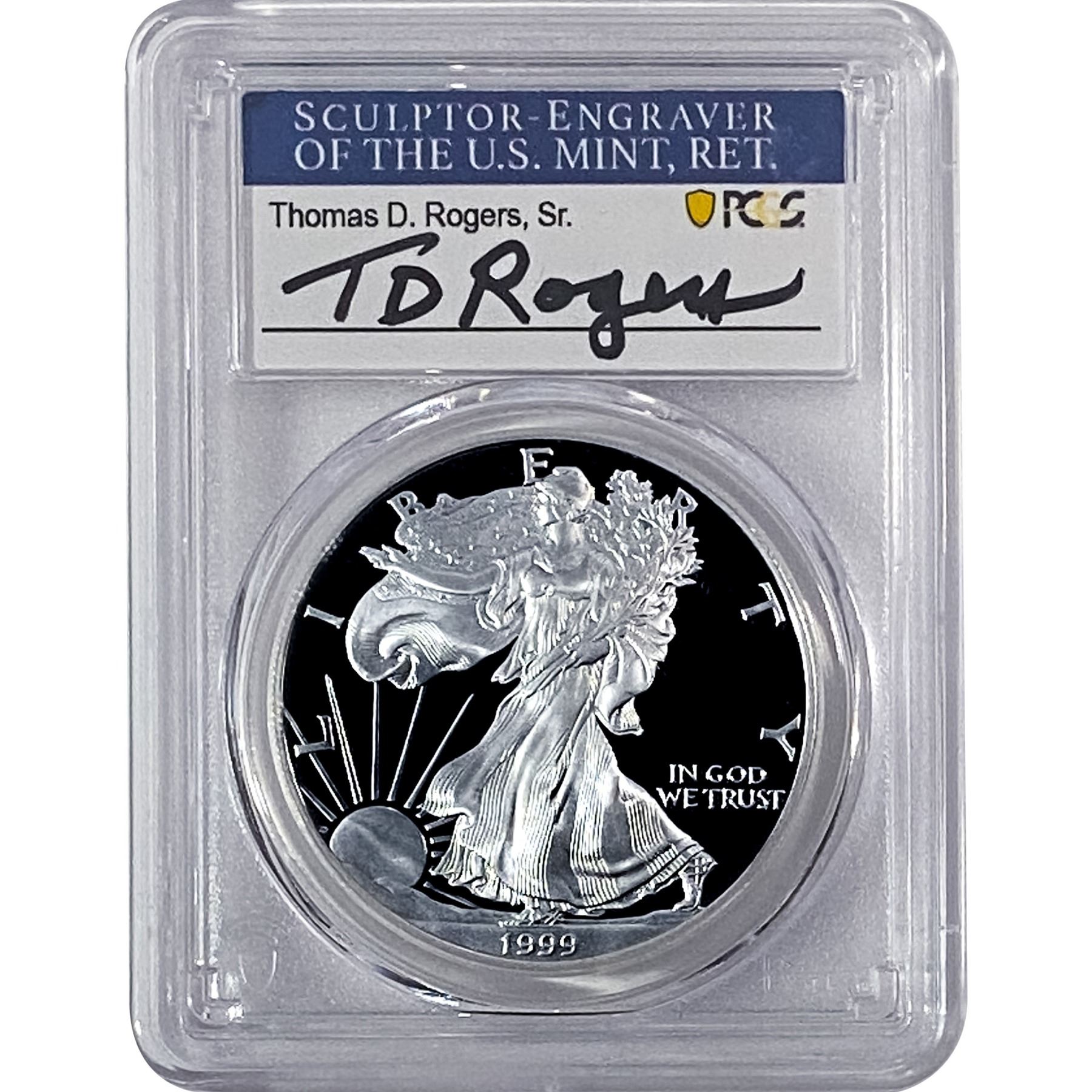 1999-P Silver Eagle PCGS PR70 DCAM Thomas D Rogers