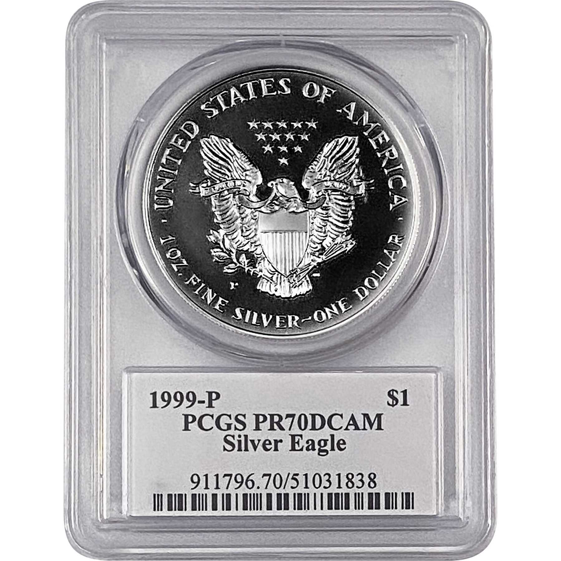 1999-P Silver Eagle PCGS PR70 DCAM Thomas D Rogers