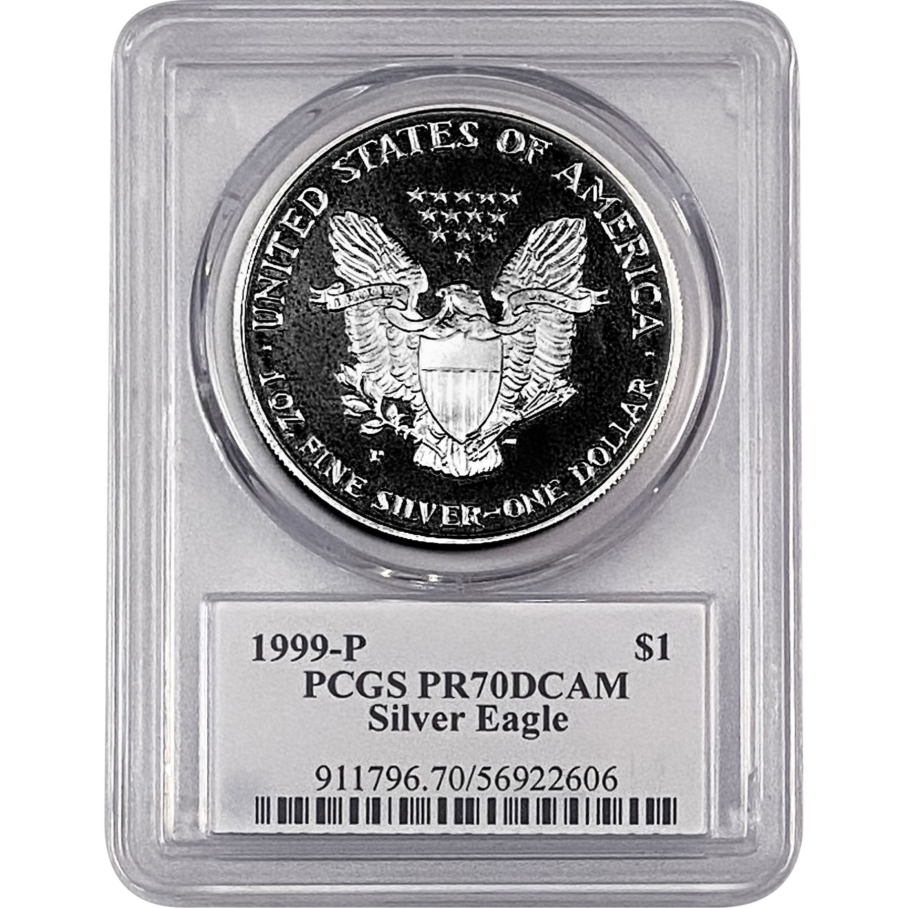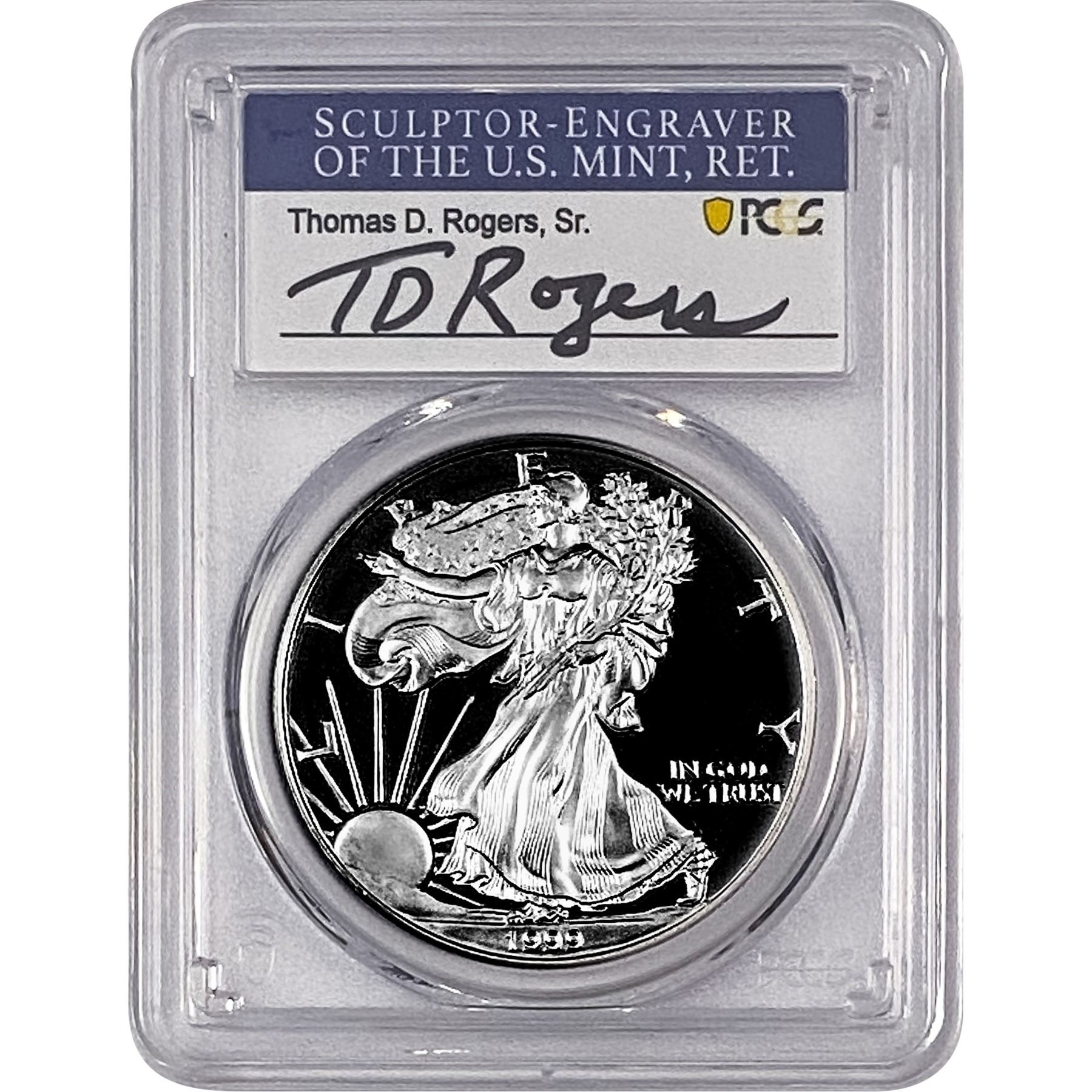 1999-P Silver Eagle PCGS PR70 DCAM Thomas D Rogers