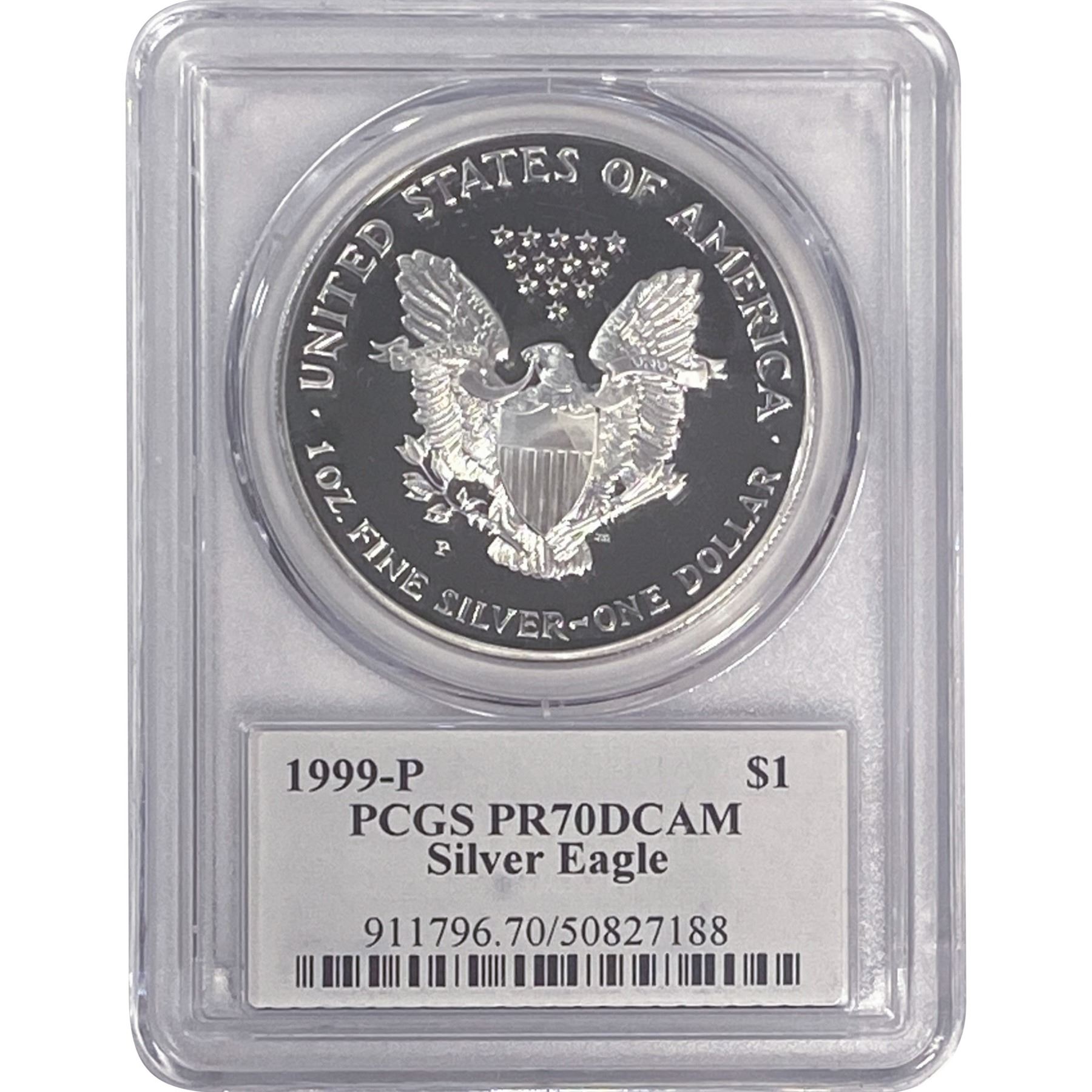 1999-P Silver Eagle PCGS PR70 DCAM Thomas D Rogers