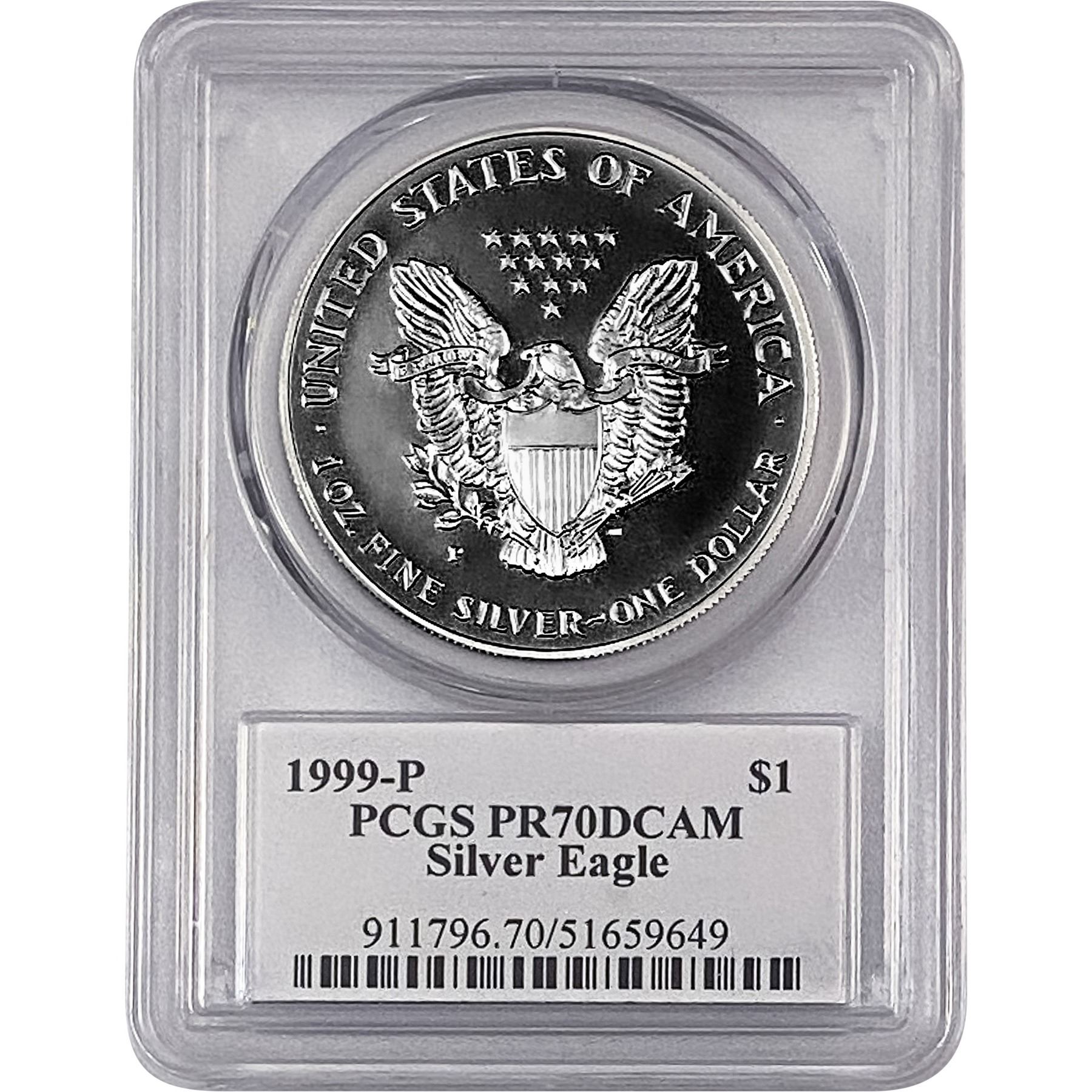 1999-P Silver Eagle PCGS PR70 DCAM Thomas D Rogers