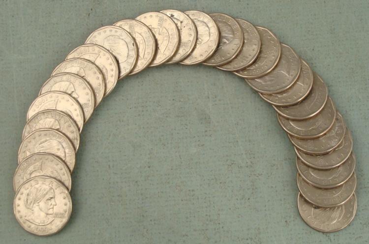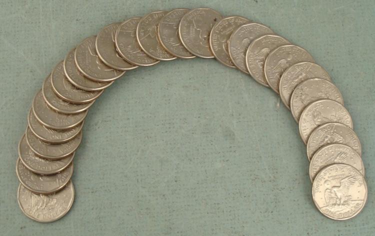 1999-P Susan B. Anthony dollar unwrapped roll, 25 coins total