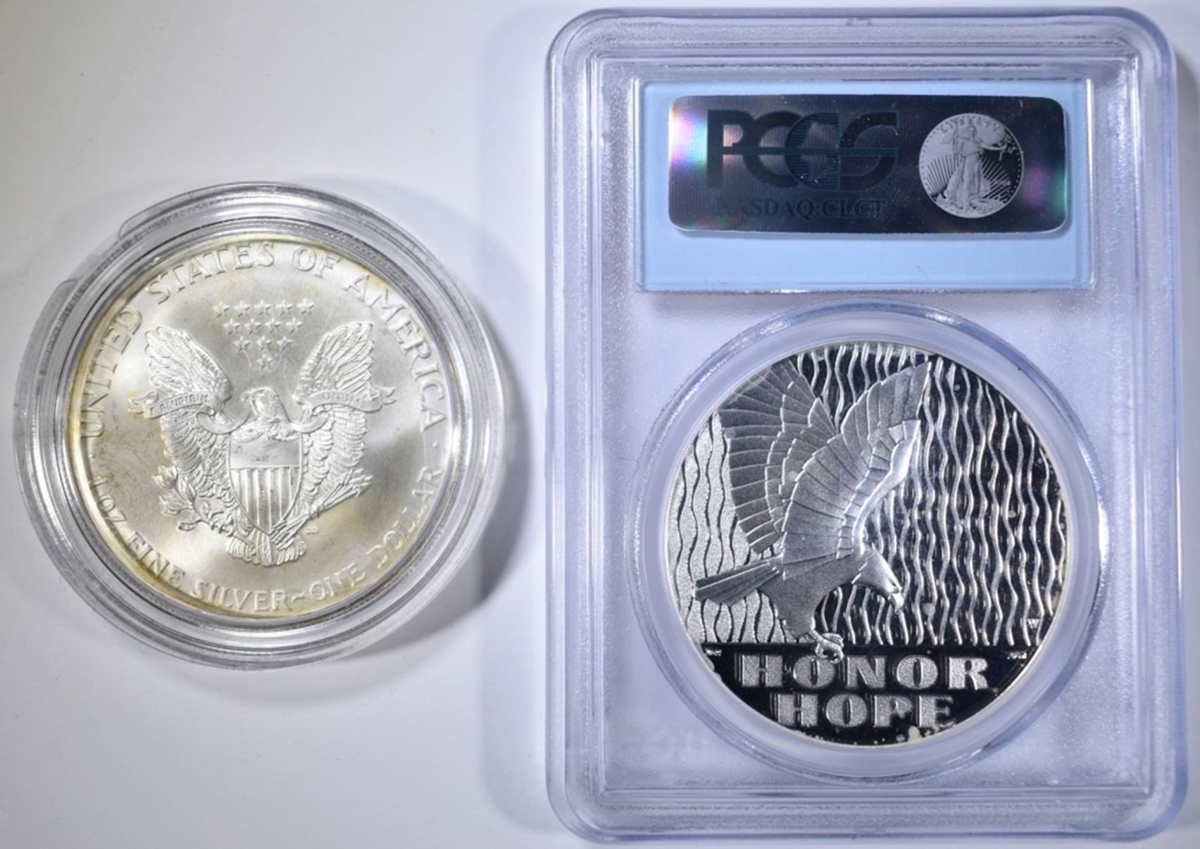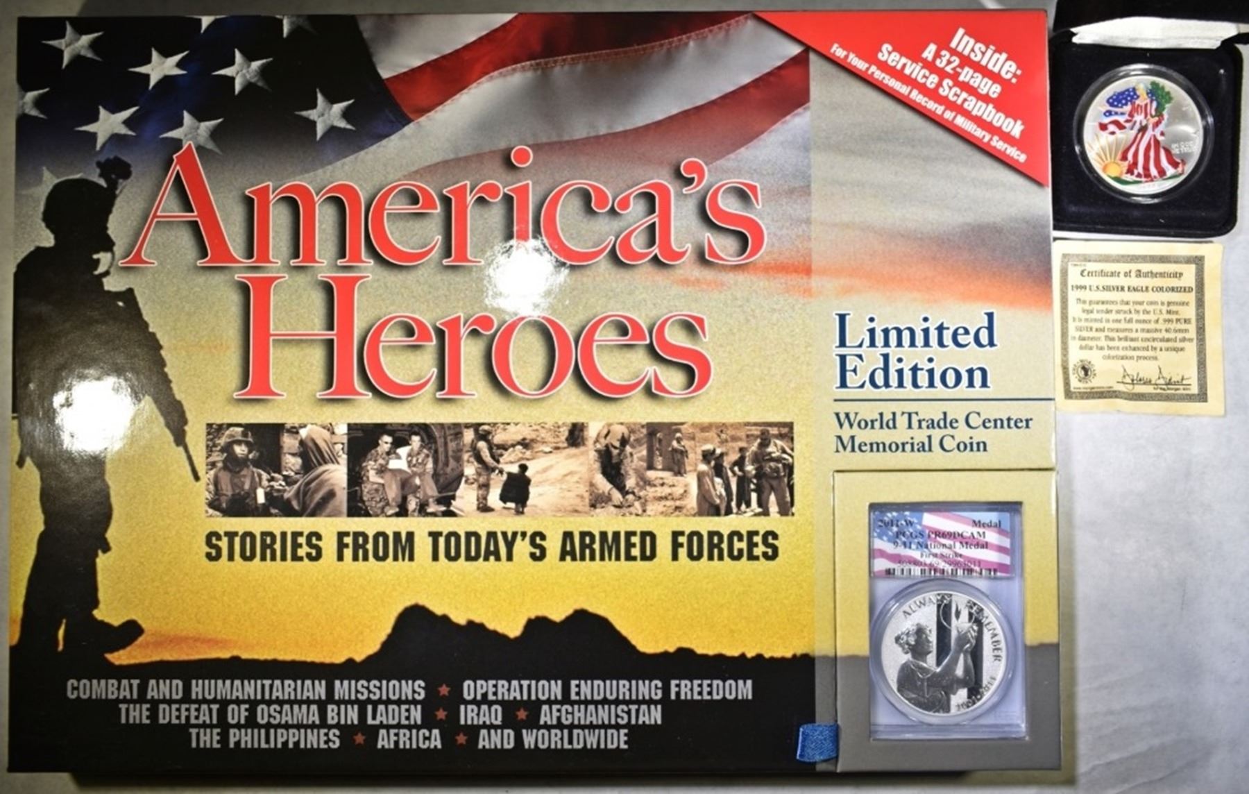 PCGS PR-69 DCAM AND AMERICA'S HEROES BOOK. ESTIMATE $90 - $110.
