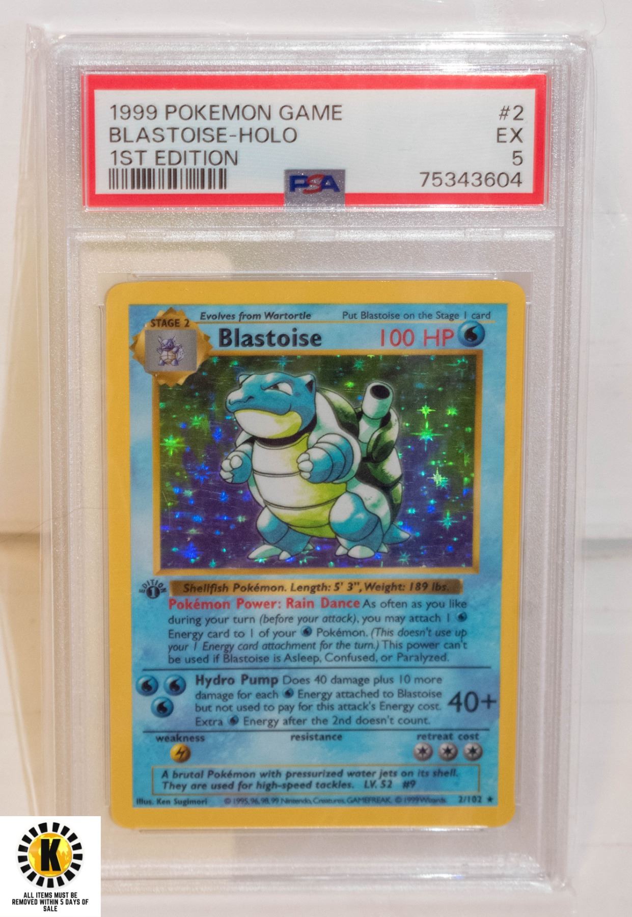 1999 POKEMON GAME #2 BLASTOISE-HOLO 1ST ED. PSA 5