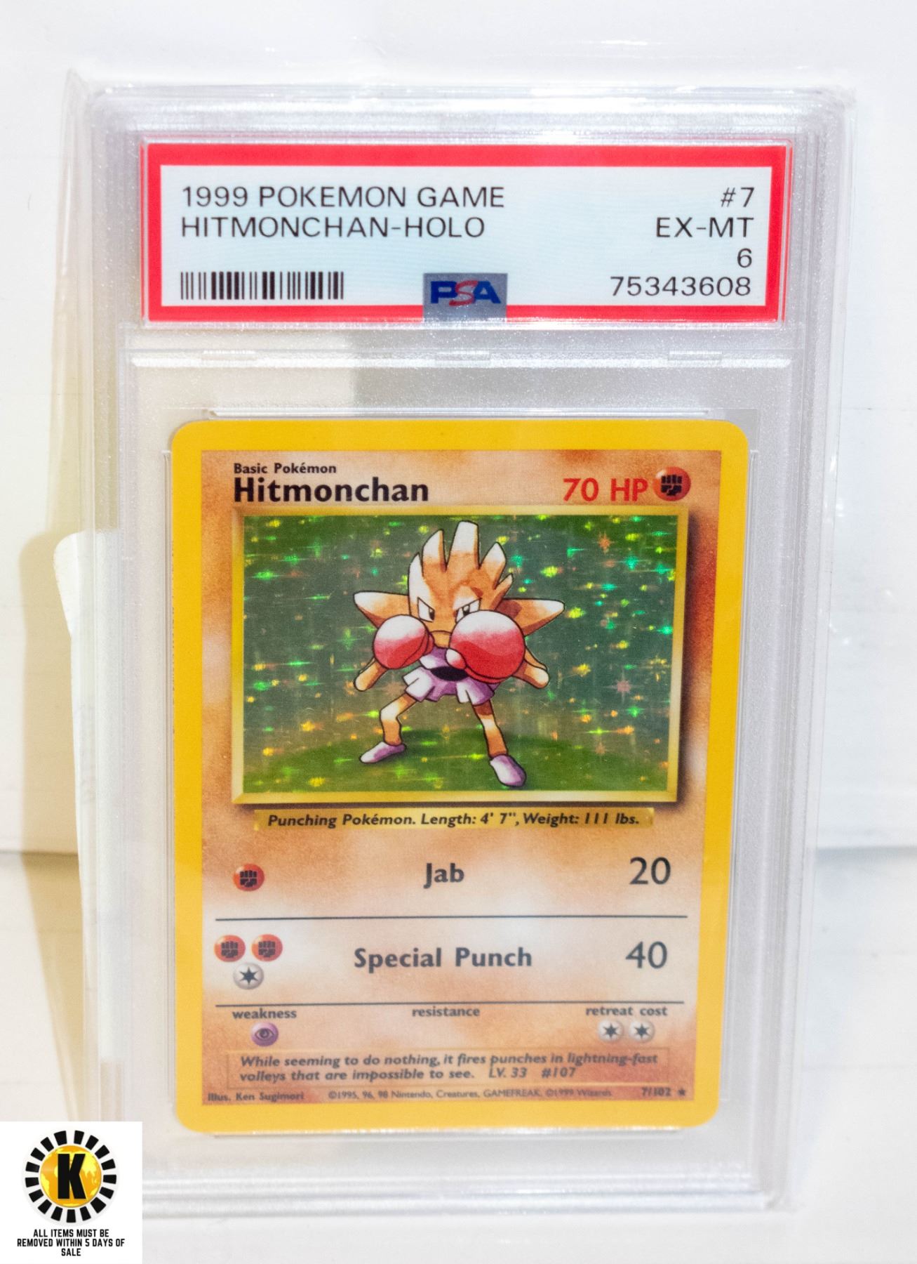 1999 POKEMON GAME #7 HITMONCHAN-HOLO EX-MT PSA 6