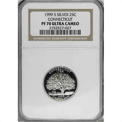 1999-S 25C Connecticut Silver Deep Cameo PR70 NGC