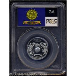 <table><tr><td><TABLE cellSpacing=0 cellPadding=0 width="100%" bgColor=#000000 border=0><TBODY> <TR><TD width="100%"><TABLE cellSpacing=1 cellPadding=3 width="100%" border=0><TBODY><TR><TD width="100%" bgColor=#79735c><FONT face=arial color=#ffffff size=3><B>Description</B> </FONT></TD></TR><TR><TD width="100%" bgColor=#ffffff><FONT face=arial size=2><B>1999-S 25C Georgia Clad PR70 Deep Cameo PCGS.</B></I> Absolute perfection, both sides are completely brilliant and reflect a deep cameo effect. </FONT></TD></TR></TBODY></TABLE></TD></TR></TBODY></TABLE><BR><A name=PricesRealized></A><TABLE cellSpacing=0 cellPadding=0 width="100%" bgColor=#000000 border=0><TBODY><TR><TD width="100%"><TABLE cellSpacing=1 cellPadding=3 width="100%" border=0><TBODY><TR><TD width="100%" bgColor=#79735c><A name=PR><FONT face=arial color=#ffffff size=3><B>Previous Prices from Heritage Auctions</B> </FONT></A></TD></TR><TR><TD bgColor=#f6f6ed><TABLE cellSpacing=0 cellPadding=0 width="100%" border=1><TBODY><TR><TD align=middle width="33%"><B>Date</B></TD><TD align=middle width="33%"><B>Service</B></TD><TD align=middle width="33%"><B>Price</B></TD></TR><TR bgColor=whitesmoke><TD width="33%"><B>09/30/2003</B></TD><TD width="33%">PCGS</TD><TD width="33%">$1,150.00</TD></TR></TBODY></TABLE></TD></TR><TR><TD bgColor=#ffffff><FONT face=arial size=1 ?>PLEASE NOTE: All prices realized reflect the final hammer price PLUS the buyer's premium in auctions that charge a buyer's premium. Each item has a notation at the top of the listing indicating whether that lot included a buyer's premium. Example: A item that sells with a final hammer price of $100 and a 20% buyer's premium will display with a price realized of $120. All information listed is intended to be as accurate as possible, but errors are possible. Please use this guide carefully and inform us of any inaccuracies. </FONT></TD></TR></TBODY></TABLE></TD></TR></TBODY></TABLE><BR><TABLE cellSpacing=0 cellPadding=0 width="100%" bgColor=#000000 border=0><TBODY><TR><TD width="100%"><TABLE cellSpacing=1 cellPadding=3 width="100%" border=0><TBODY><TR><TD width="100%" bgColor=#79735c colSpan=6><FONT face=arial color=#ffffff size=3><B>Price Guide*</B> </FONT></TD></TR><TR bgColor=#f6f6ed><TD align=middle><B>Grade</B> </TD><TD align=middle><B>Coin World<BR>(Trends)</B> </TD><TD align=middle><B>Numismedia<BR>Retail</B> </TD><TD align=middle><B>Numismedia<BR>Wholesale</B> </TD><TD align=middle><B>Coin<BR>Universe</B> </TD><TD align=middle><B>Heritage<BR>Value Index</B> </TD></TR><TR bgColor=#ffffff><TD align=middle>69</TD><TD align=right>---</TD><TD align=right>---</TD><TD align=right>---</TD><TD align=right>$30.00</TD><TD align=right>($1.00)</TD></TR><TR style="FONT-WEIGHT: bold" bgColor=#cccfdd><TD align=middle>70</TD><TD align=right>---</TD><TD align=right>---</TD><TD align=right>---</TD><TD align=right>$2,250.00</TD><TD align=right>($1.00)</TD></TR><TR bgColor=#ffffff><TD colSpan=6><FONT size=1>*All information listed is intended to be as accurate as possible, but errors are possible. No item may be returned or refused based on this information which is provided as a service to our customers. You should contact each pricing source directly to determine the accuracy of this information. </FONT></TD></TR></TBODY></TABLE></TD></TR></TBODY></TABLE><BR><TABLE cellSpacing=0 cellPadding=0 width="100%" bgColor=#000000 border=0><TBODY><TR><TD width="100%"><TABLE cellSpacing=1 cellPadding=3 width="100%" border=0><TBODY><TR><TD width="100%" bgColor=#79735c><FONT face=arial color=#ffffff size=3><B>Population Guide</B> </FONT></TD></TR><TR bgColor=#ffffff><TD align=middle><!-- Begin Output of Population Grid--><TABLE cellSpacing=0 cellPadding=0 width="100%" border=0><TBODY><TR><TD vAlign=center><TABLE cellSpacing=0 width="100%" border=1 cellsadding="3"><TBODY><TR><TD vAlign=center><TABLE cellSpacing=0 cellPadding=3 width="100%" border=1><TBODY><TR><TD vAlign=center align=middle bgColor=#f0f1e8 colSpan=2 <CENTER><FONT face=Arial size=2><B>PCGS Pop </B></FONT><CENTER></CENTER></TD><TD vAlign=center align=middle bgColor=#f0f1e8 colSpan=2><CENTER><FONT face=Arial size=2><B>NGC Pop</B></CENTER></FONT></TD></TR><TR><TD vAlign=center><FONT face=Arial size=2>(70)</FONT> </TD><TD vAlign=center align=right><FONT face=Arial size=2>5</FONT> </TD><TD vAlign=center><FONT face=Arial size=2>(70)</FONT> </TD><TD vAlign=center align=right><FONT face=Arial size=2>0</FONT> </TD></TR><TR><TD vAlign=center><FONT face=Arial size=2>(>70)</FONT> </TD><TD vAlign=center align=right><FONT face=Arial size=2>0</FONT> </TD><TD vAlign=center><FONT face=Arial size=2>(>70)</FONT> </TD><TD vAlign=center align=right><FONT face=Arial size=2>0</FONT> </TD></TR></TBODY></TABLE></TD></TR></TBODY></TABLE></TD></TR></TBODY></TABLE><!-- End Output of Population Grid--></TD></TR></TBODY></TABLE></TD></TR></TBODY></TABLE><BR><TABLE cellSpacing=0 cellPadding=0 width="100%" bgColor=#000000 border=0><TBODY><TR> Important notice: Heritage usually auctions material at the rate of 200-250 lots per hour. On some occasions eBay Live bid software or the Internet may not be able to keep up with the pace of the auction. We recommend placing a realistic absentee bid now as insurance to avoid disappointment. Occasionally the auctioneer may eliminate or reject an eBay Live bid, and the auctioneer may also reopen a lot after the close of the eBay live bidding (usually because we missed an audience bid), and may reject your bid even if it shows you as the winning bidder. By bidding via eBay Live, you agree that Heritage may award the lot to another bidder at its sole discretion under the circumstances described above or any other reasonable circumstances. Also please note that all Heritage lots purchased through eBay Live carry a 20% Buyer's Premium. Please make sure you read the Terms and Conditions before you bid.</TD></TR></TBODY></TABLE></TD></TR></TBODY></TABLE>