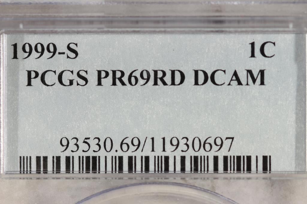 1999-S LINCOLN CENT PCGS PR69RD DCAM