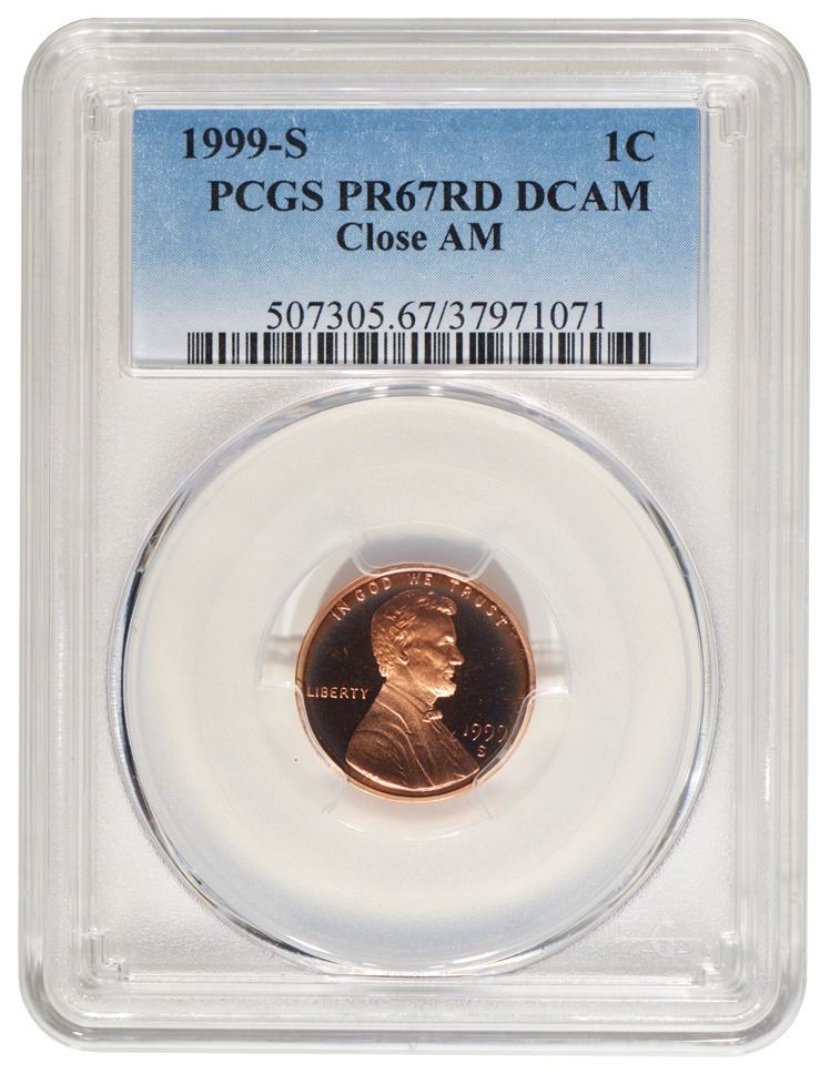One 1999-S Lincoln Cent PCGS PR67RD DCAM.