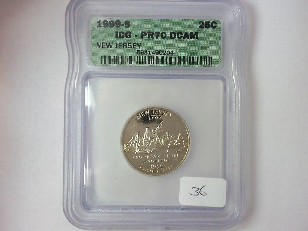 1999-S NEW JERSEY QUARTER ICG PR70 DCAM