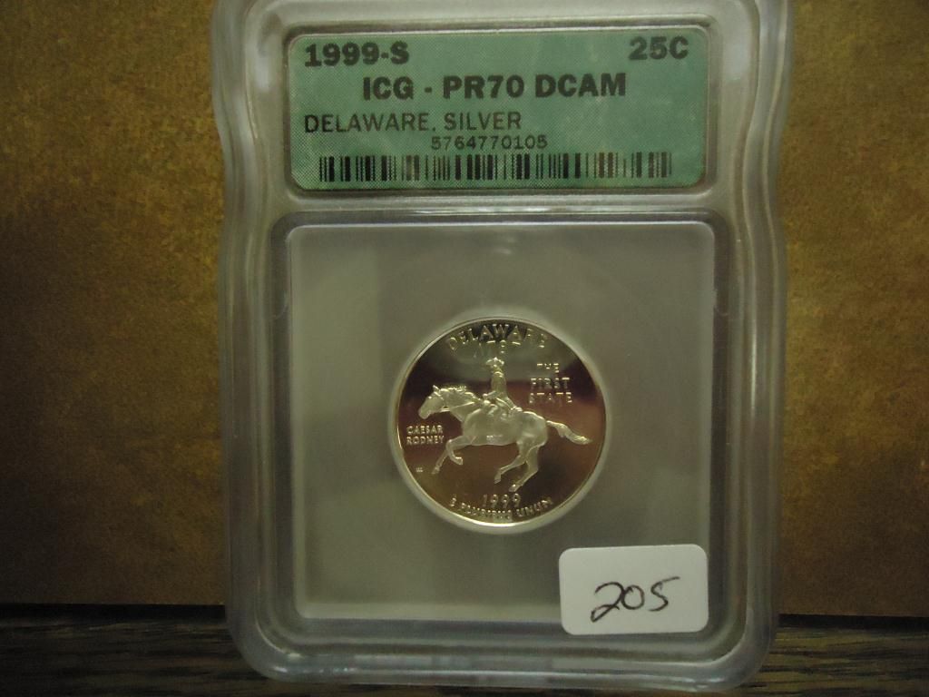 1999-S SILVER DELAWARE QUARTER ICG PR70 DCAM