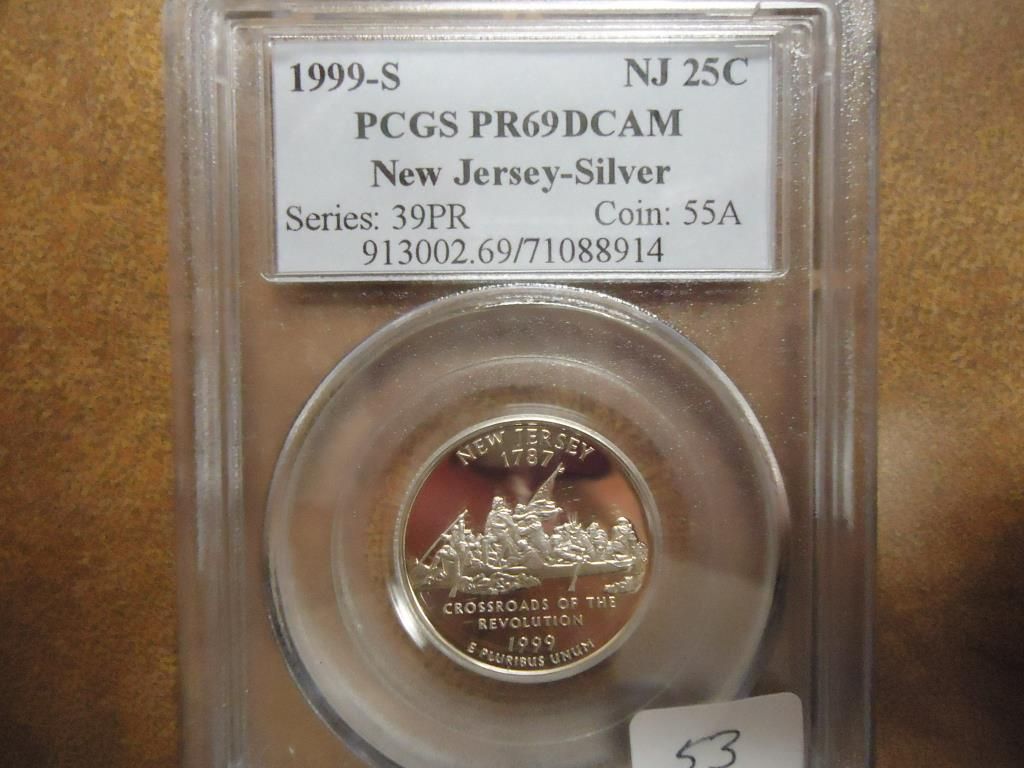 1999-S SILVER NEW JERSEY QUARTER PCGS PR69 DCAM