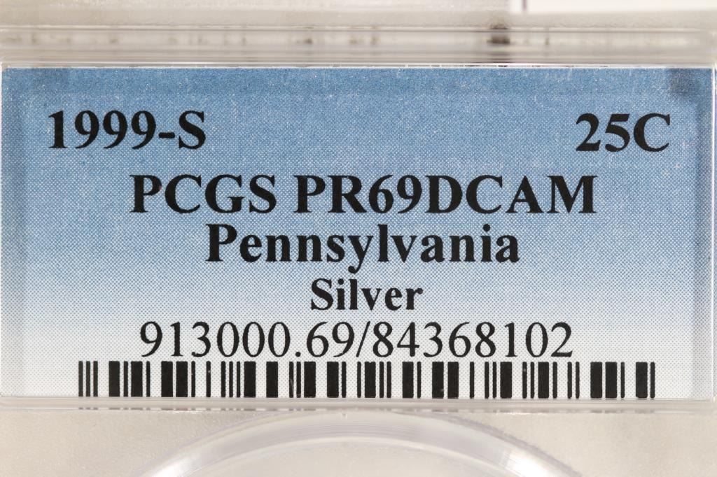 1999-S SILVER PENNSYLVANIA QUARTER PCGS PR69 DCAM