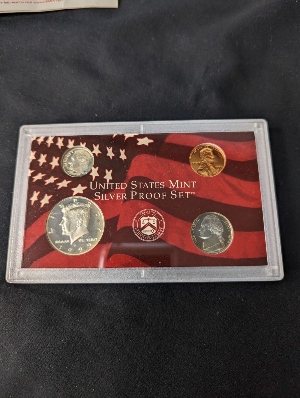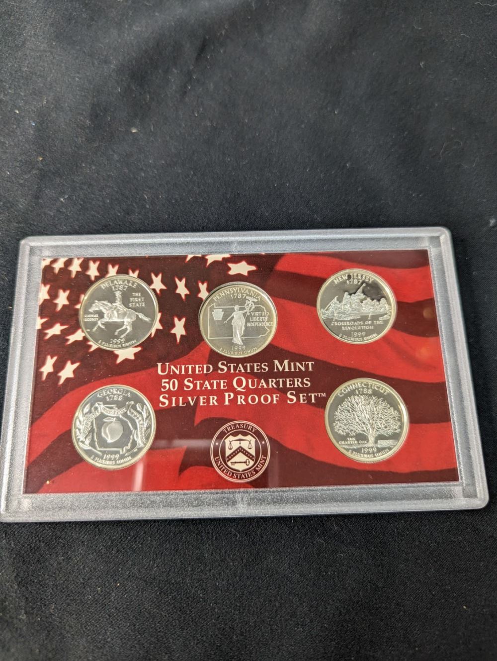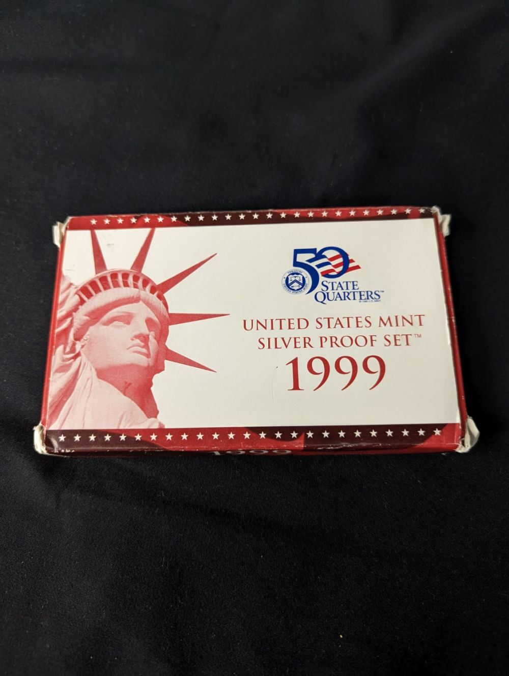 A 1999-S& nbsp; US Silver Proof Set. The First of the Statehood quarters issue and a key date set. Beautiful Proof Coins with Ultra Deep Fields. In original box with COA.