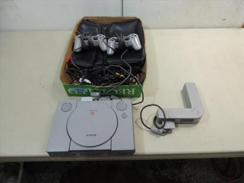 1999 SONY PLAYSTATION CONSOLE, 2 CONTROLLERS, 4 PLAYER EXPANSION, VIDEO CONNECTION & CARRYING CASE. AS SHOWN. VIEW PICTURE FOR DETAIL.