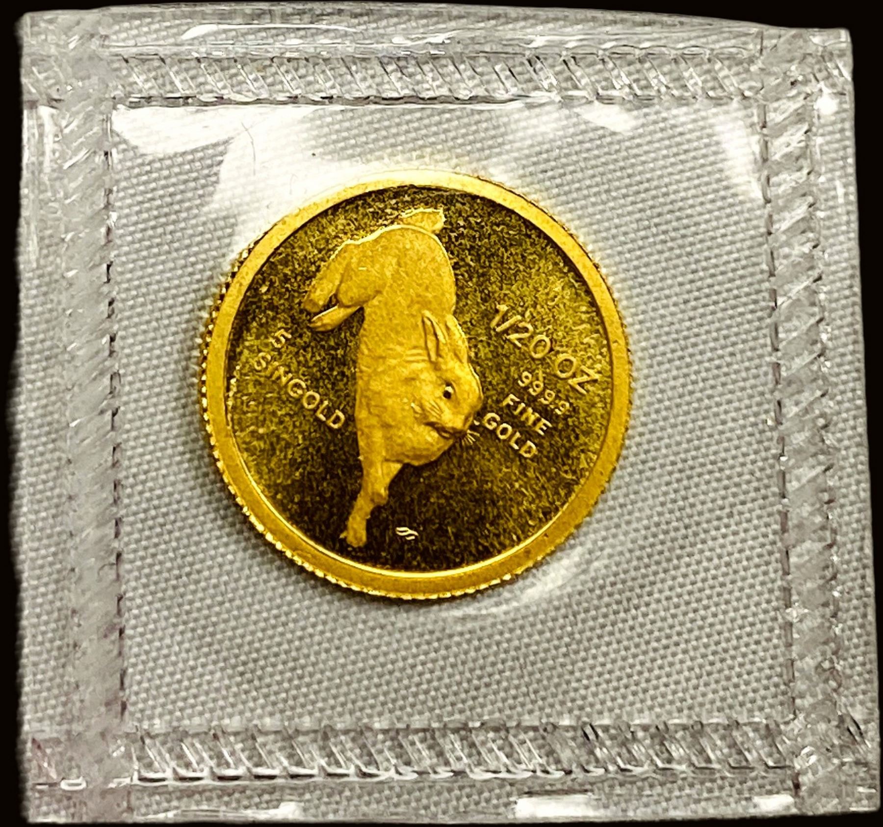 1999 Singapore 1/20oz Gold $5 Rabbit CHOICE PROOF