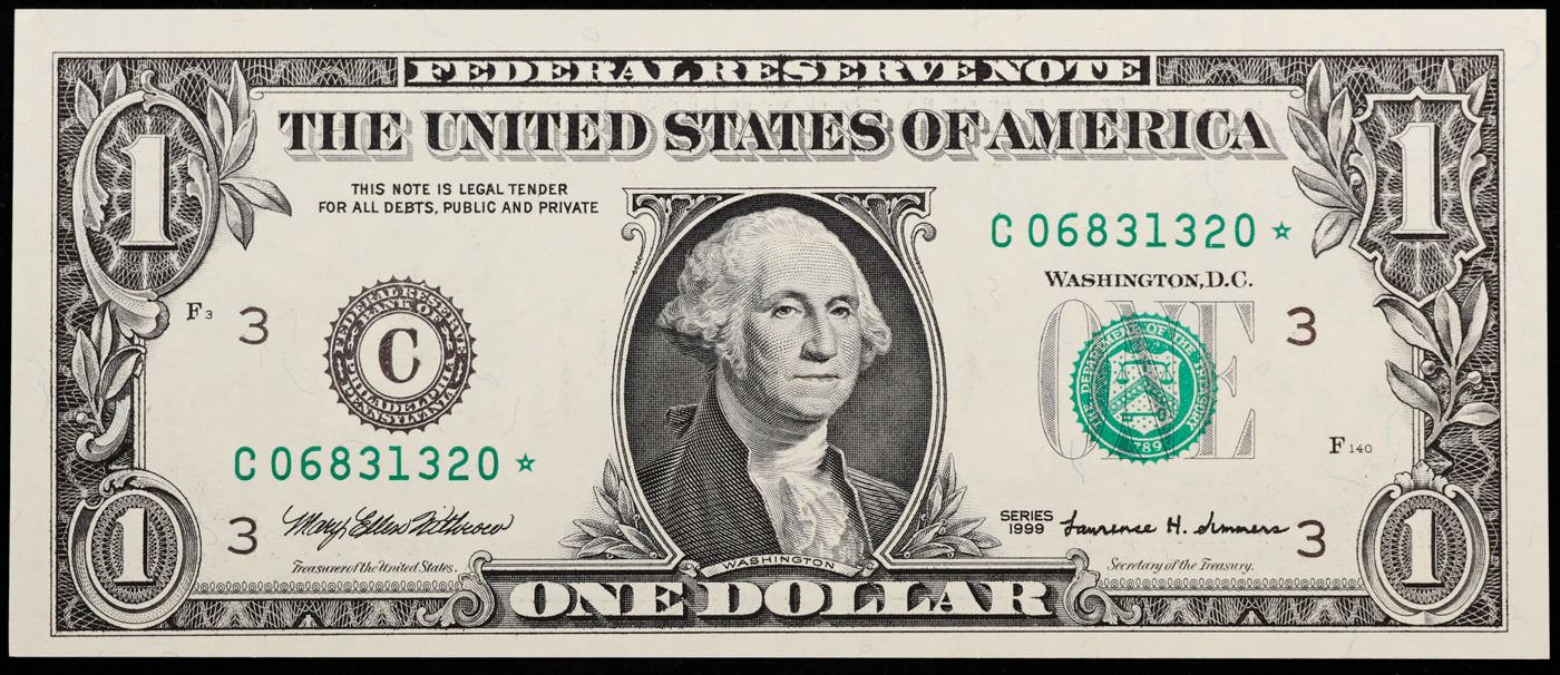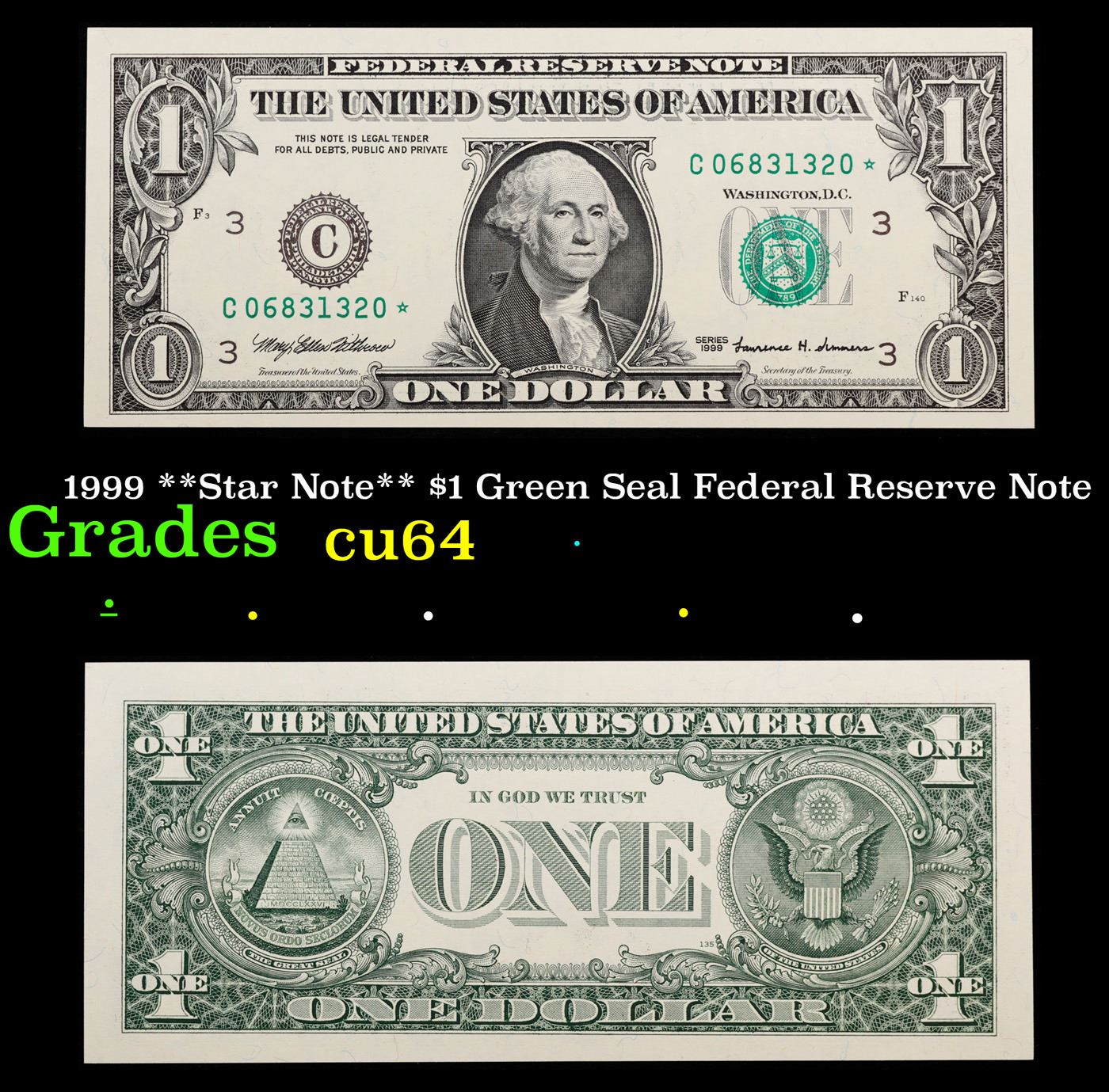 1999 **Star Note** $1 Green Seal Federal Reserve Note Grades Choice CU.