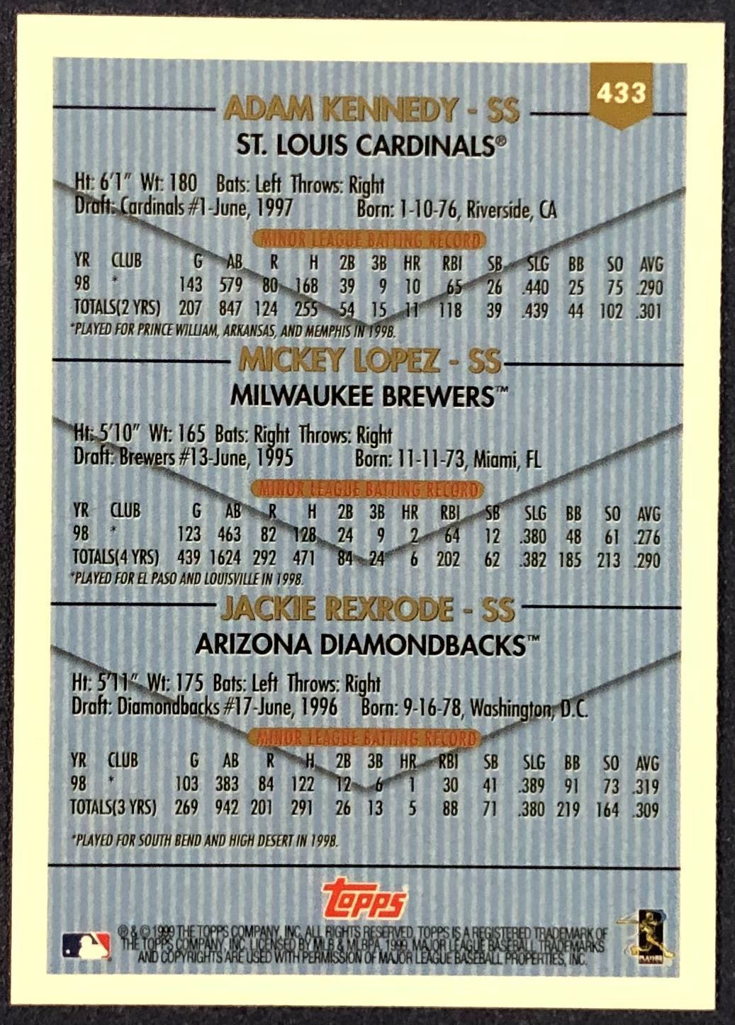 Card #433 MLB, baseball, rookie