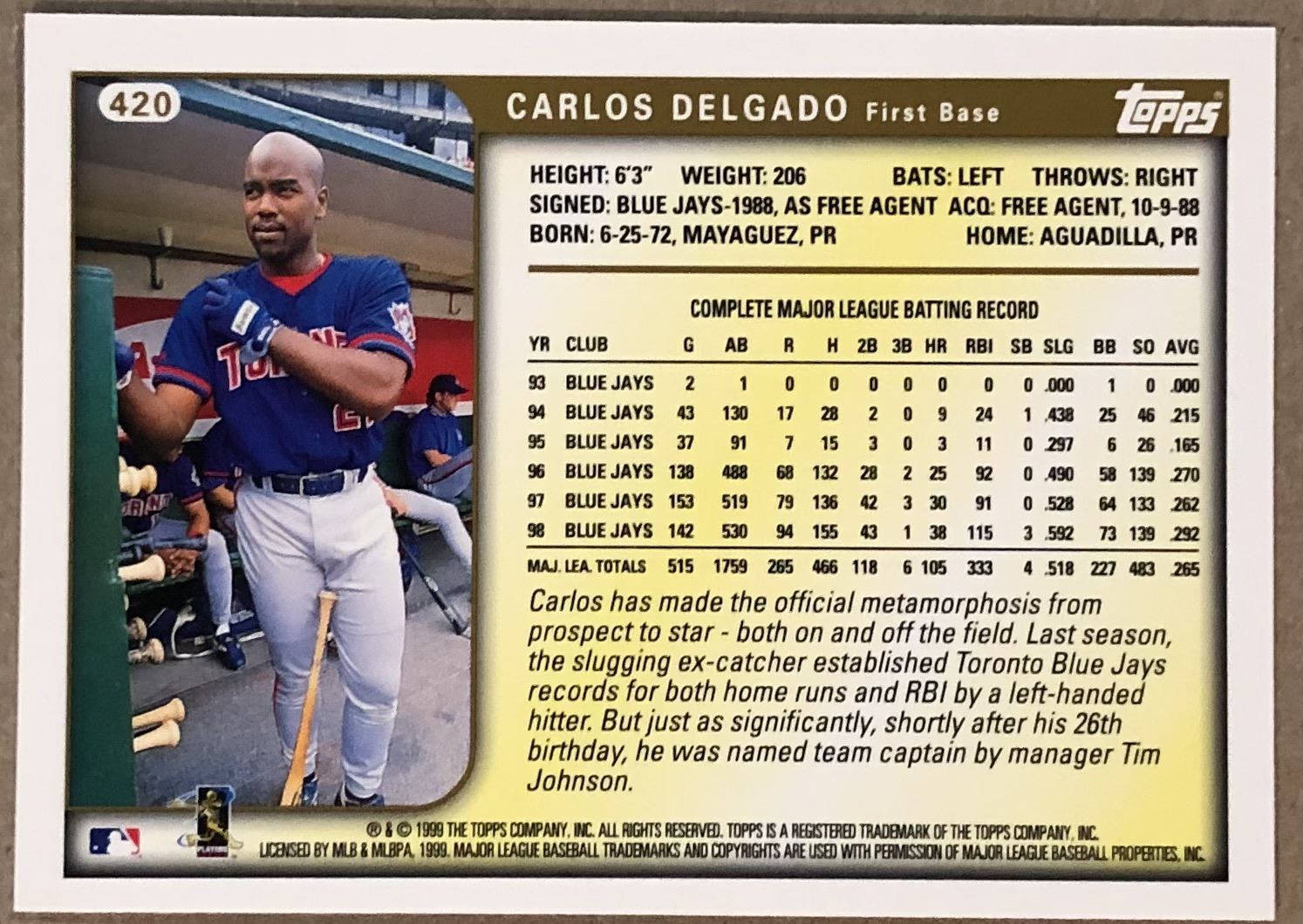 Card #420 MLB, baseball