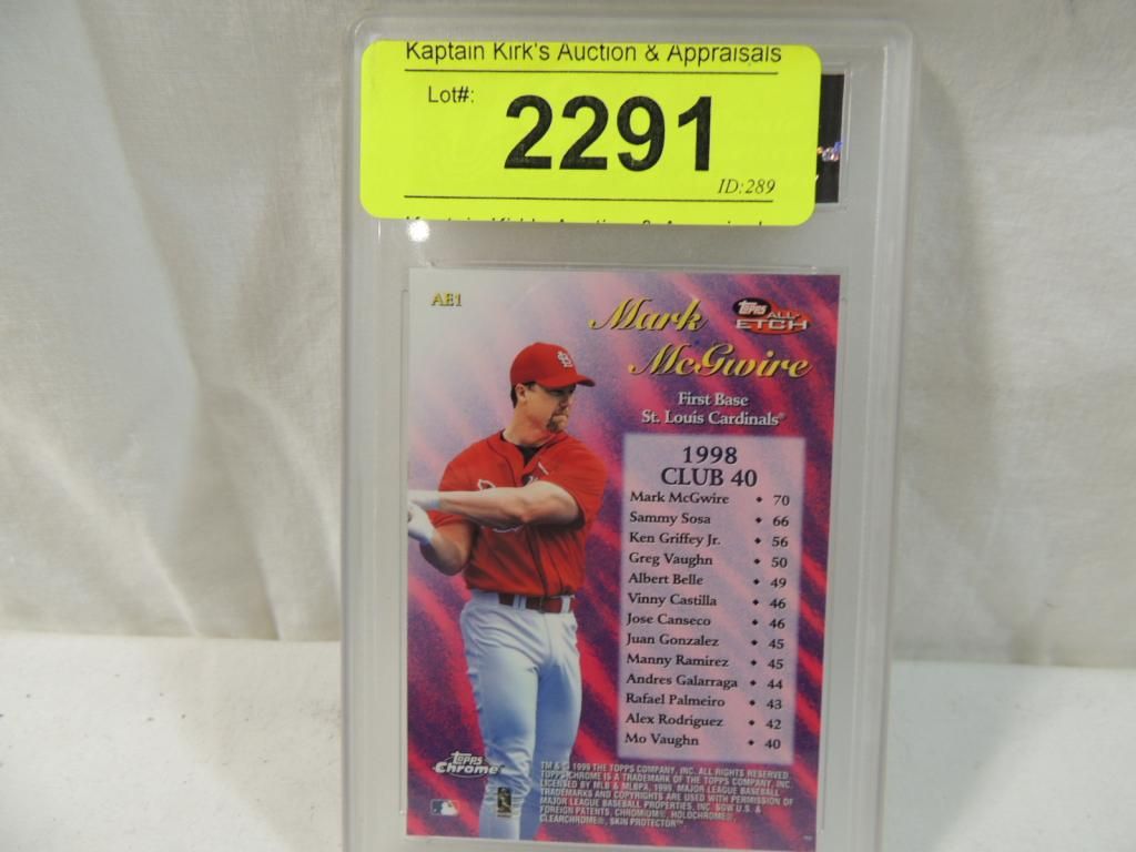 1999 TOPPS CHROME MARK MCGWIRE #AE1 GRADED GEM MT 10 BASEBALL PLAYER CARDS. TRADING CARD. COLLECTIBLE. GRADED. BASEBALL SPORTS MEMORABILIA. AS SHOWN SEE PHOTO FOR MORE DETAILS.