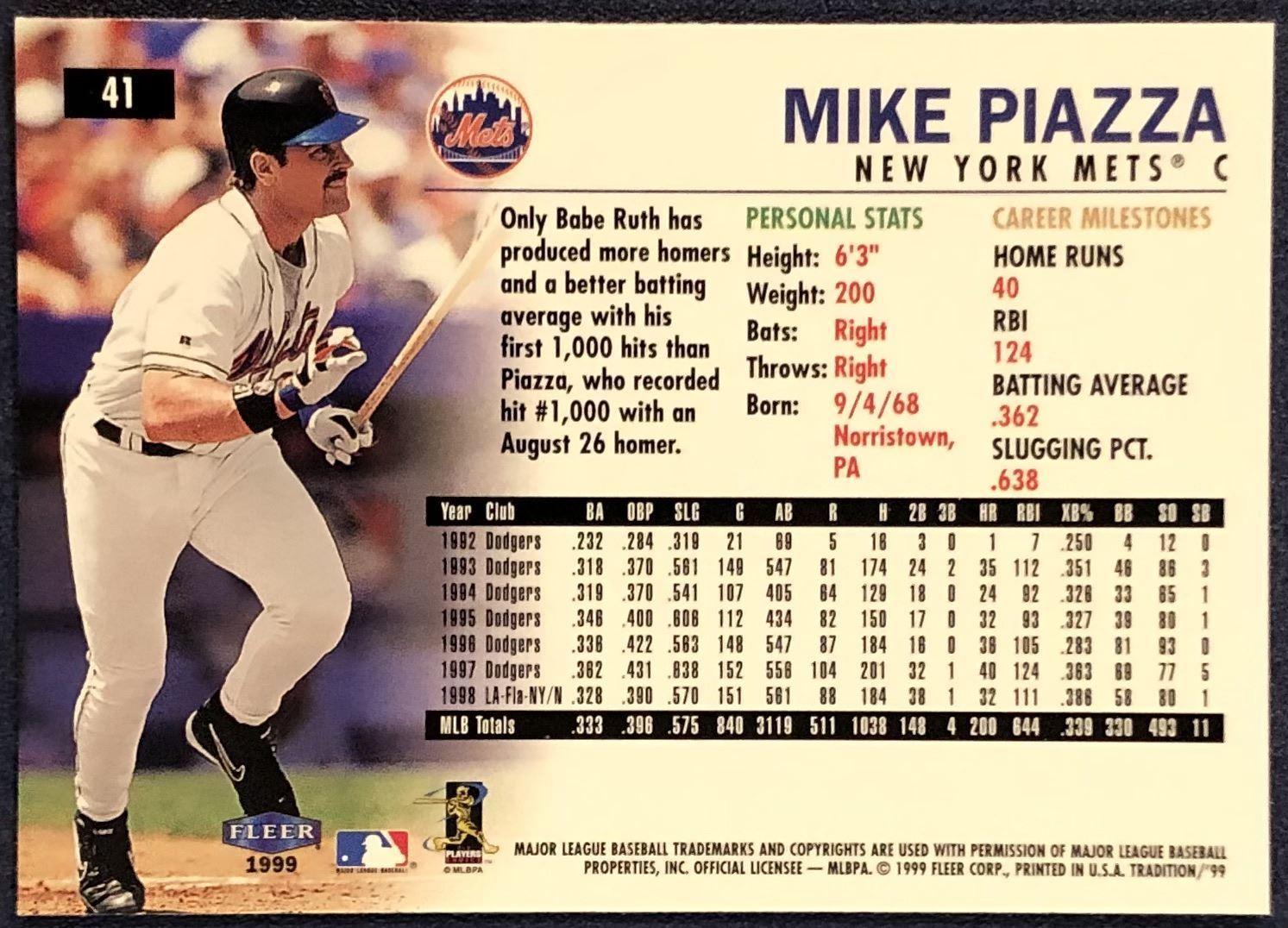 Card #41 MLB, baseball, hall of fame