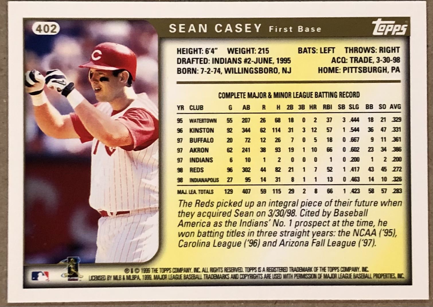 Card #402 MLB, baseball, rookie