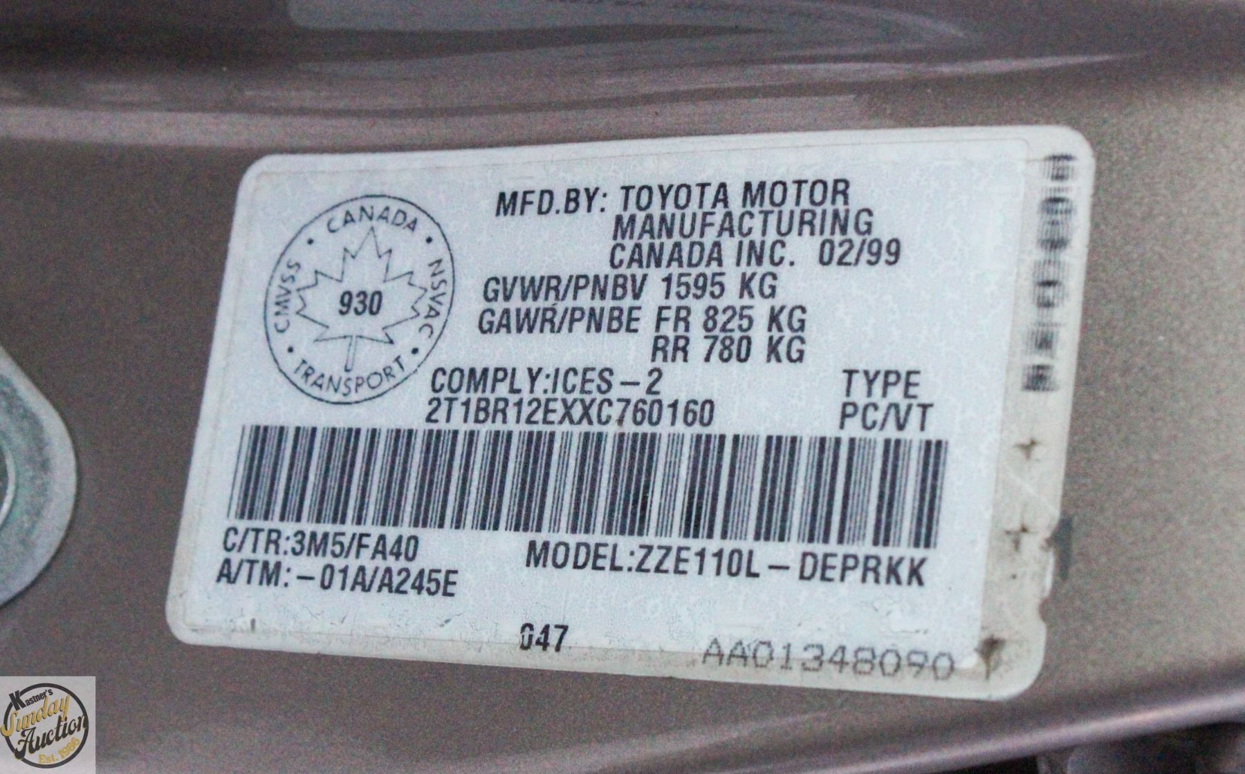 VIN: 2T1BR12EXXC760160
