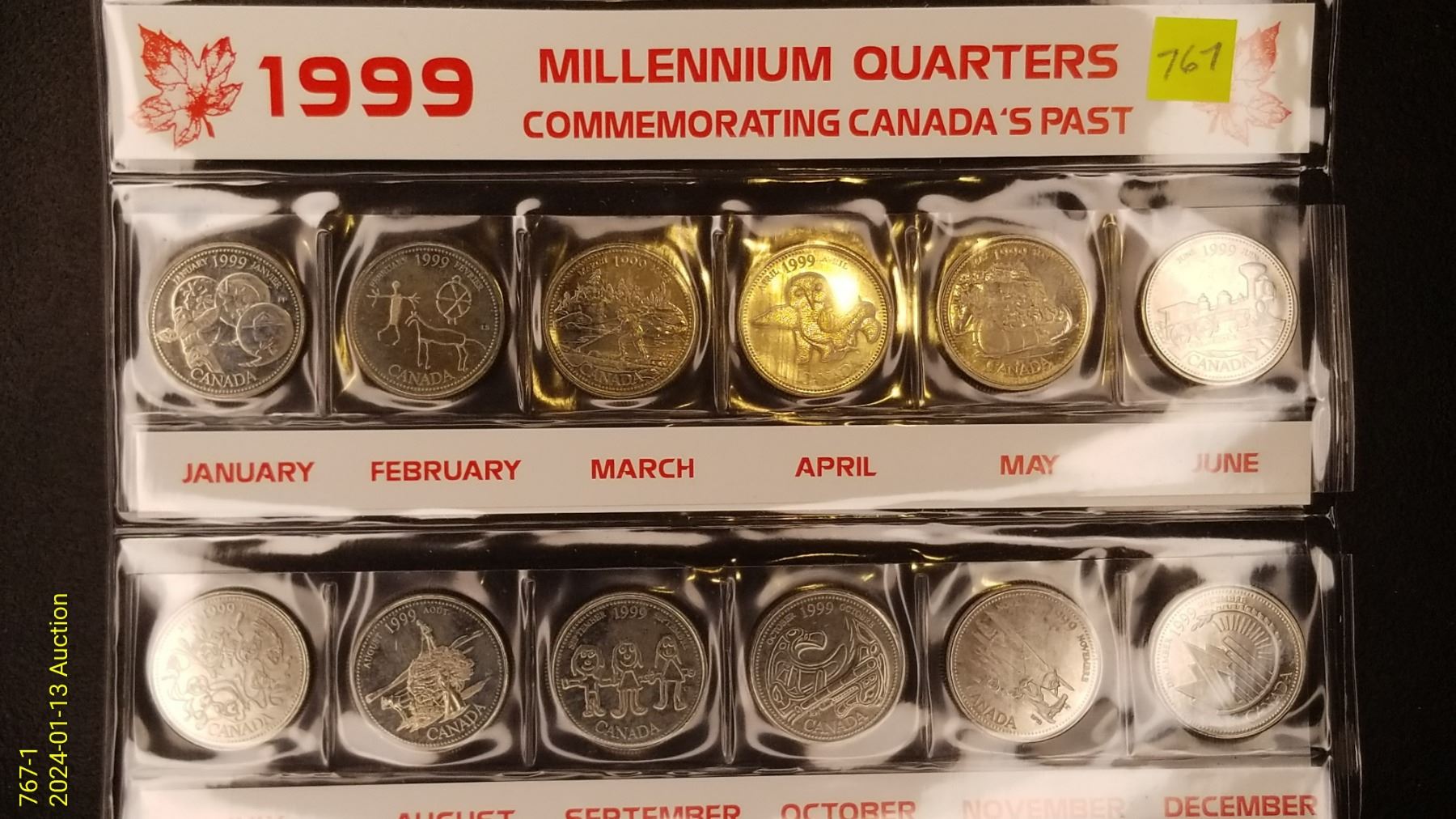 1999 Twelve Quarters in Plastic Sleeve Set By Month