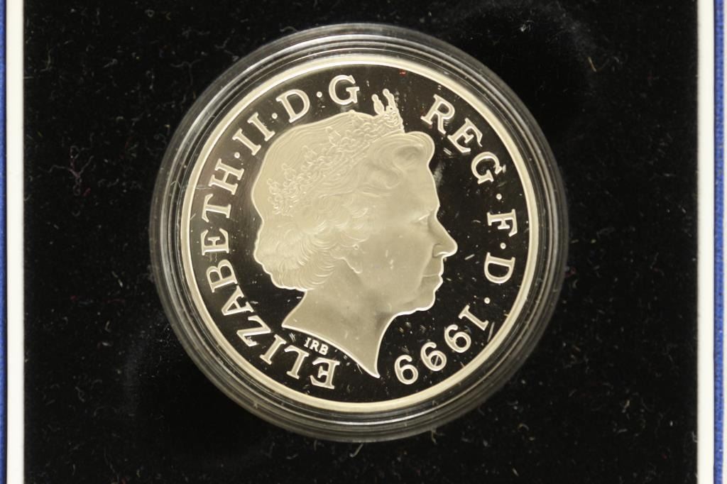 SILVER 5 POUNDS, JUST ABOUT ONE OZ. .999 FINE SILVER, ORIGINAL ROYAL MINT PACKAGING