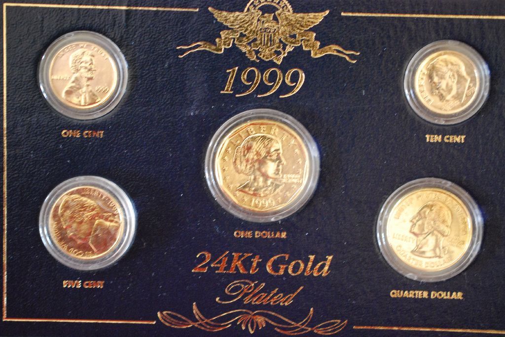 1999 US 24K Gold Plated Coin Set In Display Box With "Dalton Haston Engraving"; Lot of 5 Coins; EST. $5-10