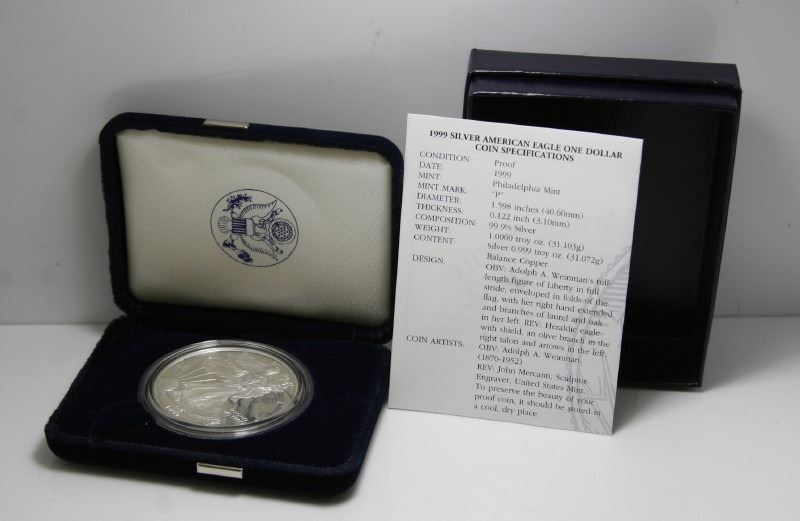 1999 United States Silver 1 Oz Proof Eagle, In Original Box - Philadelphia Mint