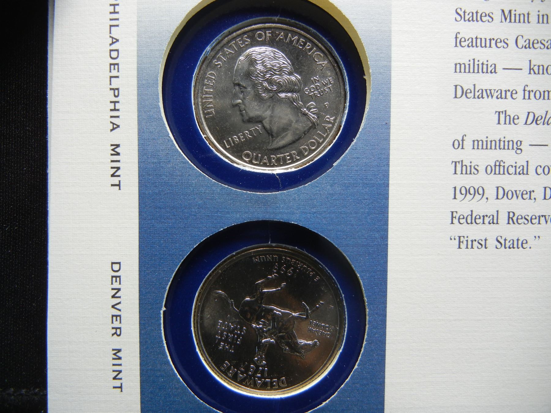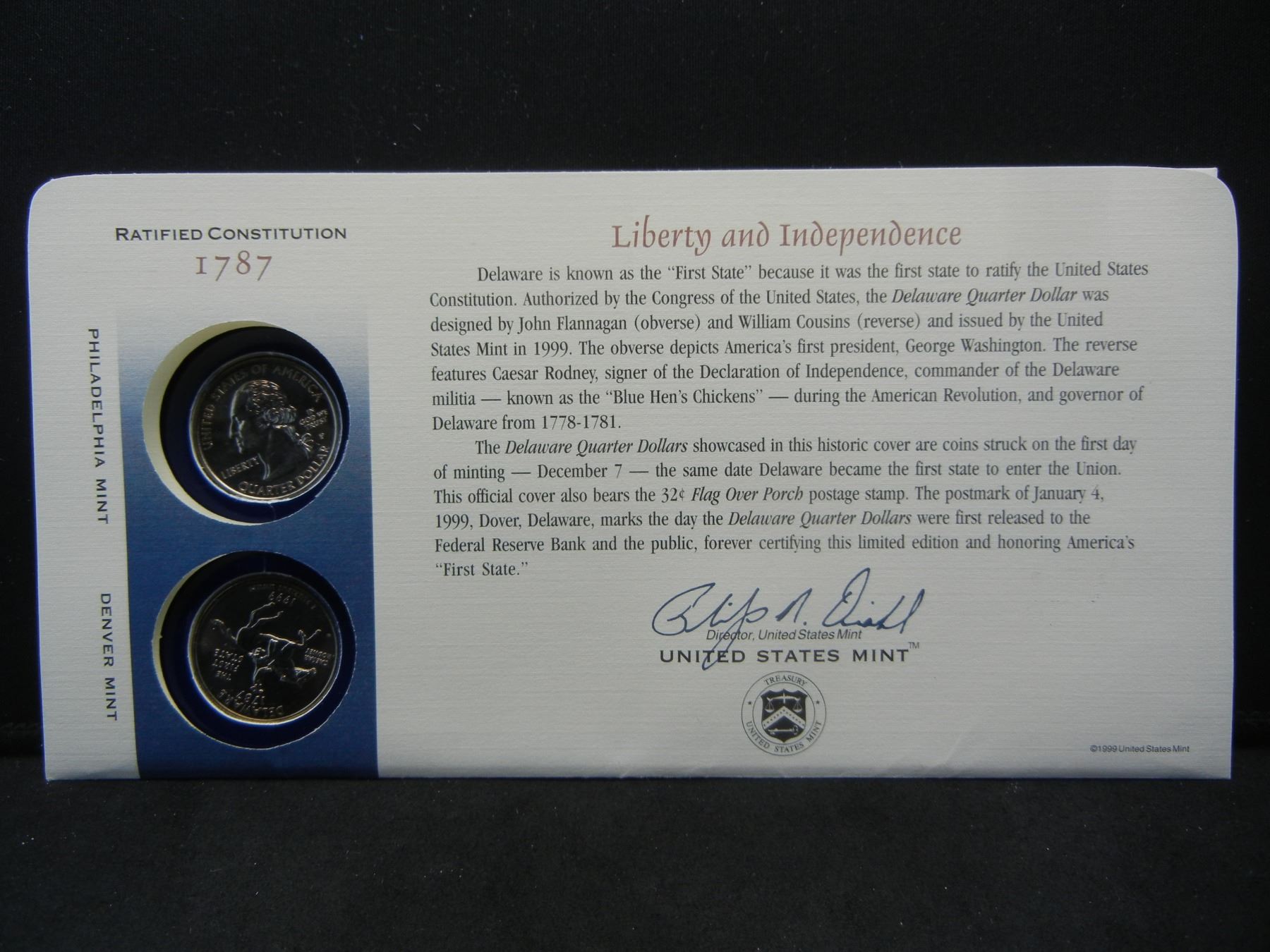 1999 United States Mint First Day of Issue Coin and Stamp Commemorative Cover.