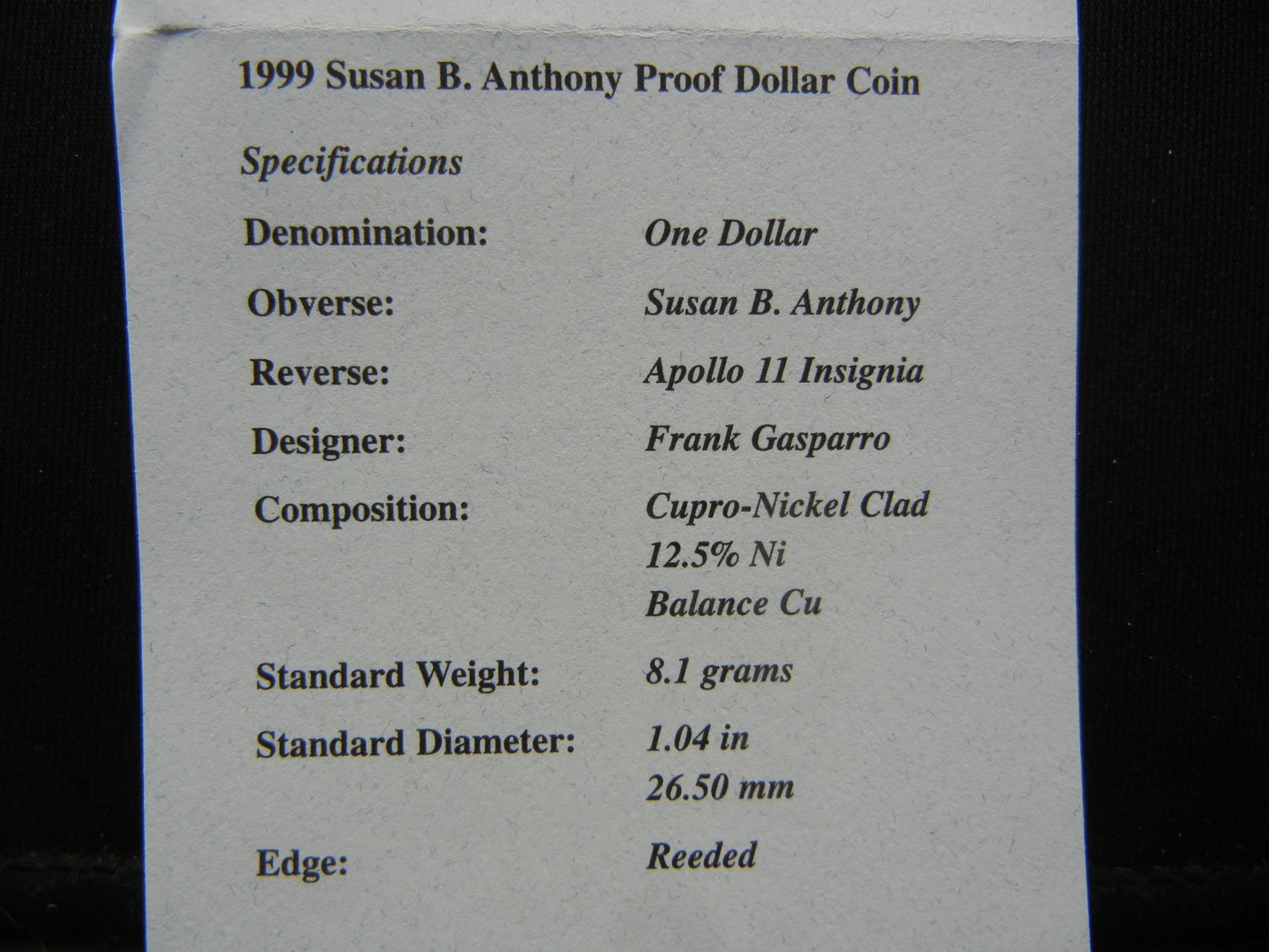 1999 United States Proof Susan B. Anthony Dollar w/ Original Packaging