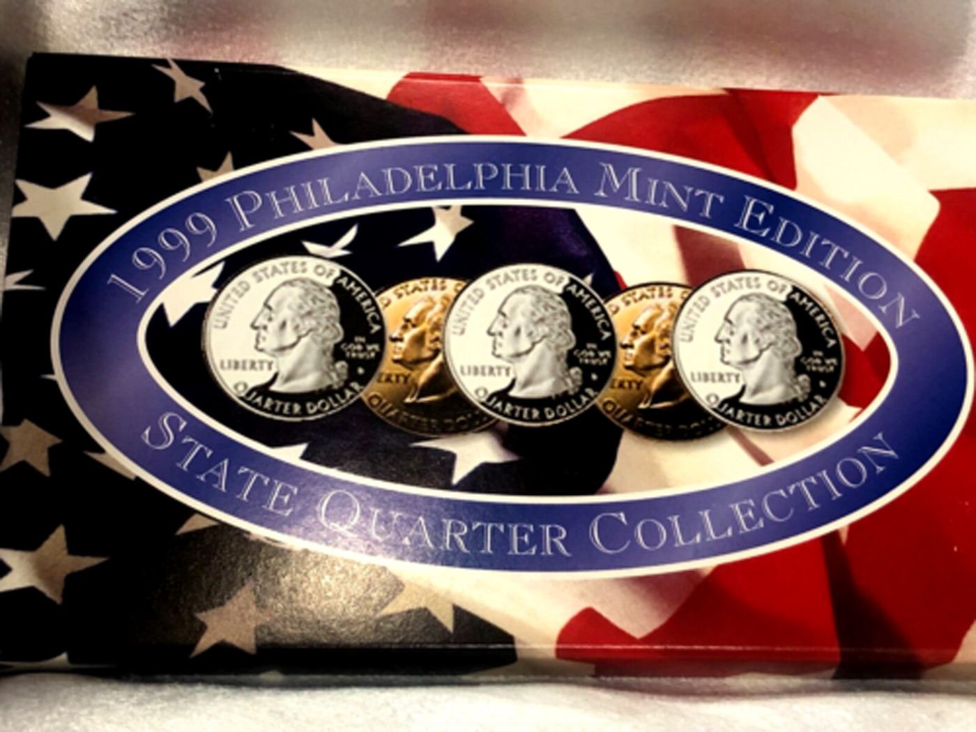 1999 United States Quarters Proof Set Philadelphia Edition, 5 Coins Inside!