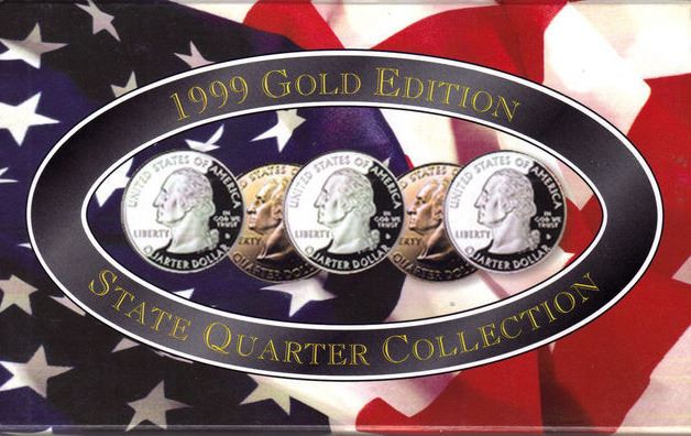 1999 United States Quarters Proof Set in Gold Edition Packaging. 5 Coins Inside!. This 5-piece set includes all the 1999 Statehood Quarter releases: Delaware, Georgia, Pennsylvania, Connecticut and New Jersey. All are minted in a beautiful proof finish.Quarter sets like this one are an ideal way to complete a collection of the popular State Quarters series.Set Highlights:Minted by the U.S. Mint in San Francisco.Set comes in original mint packaging, including a protective hard plastic case and an outer box.Contains Statehood Quarters: Delaware, Georgia, Pennsylvania, Connecticut, and New Jersey.mirrorlike Proof finish adds further beauty with an impressive shine.