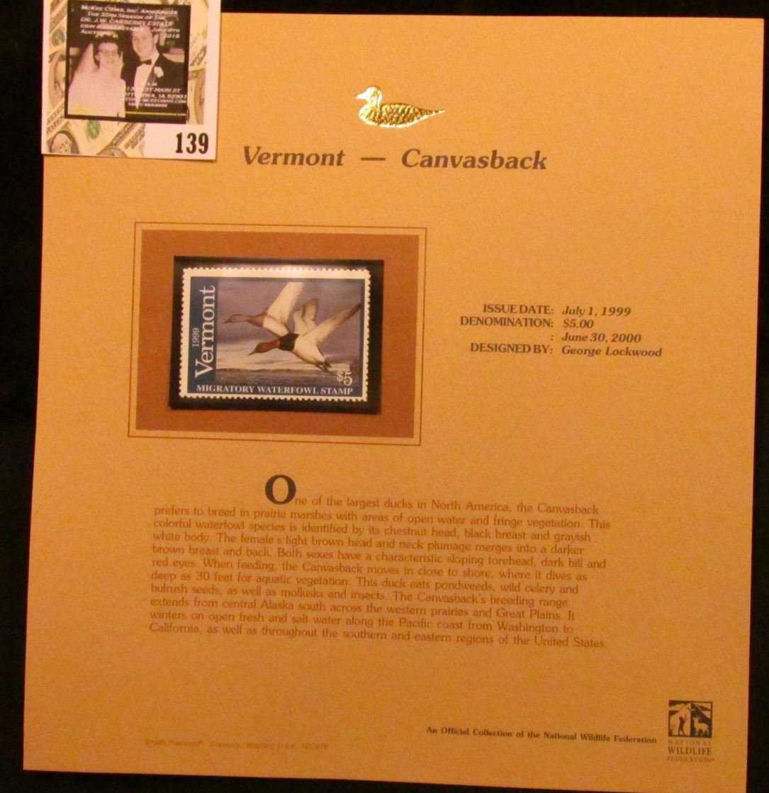 1999 Vermont-Canvasback Waterfowl $5.00 Stamp. Mint Condition with literature, unsigned.