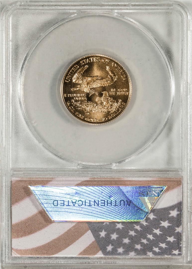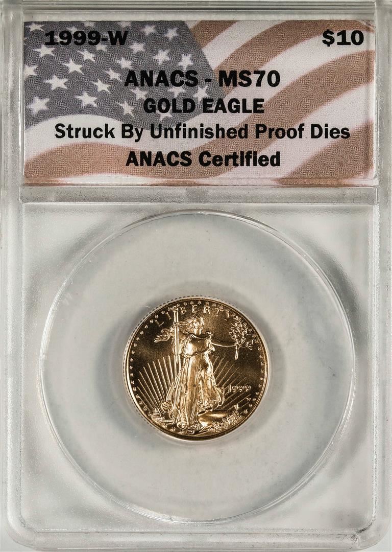 One 1999-W $10 American Gold Eagle Coin ANACS MS70 Unfinished Proof Dies. ANACS Certified.