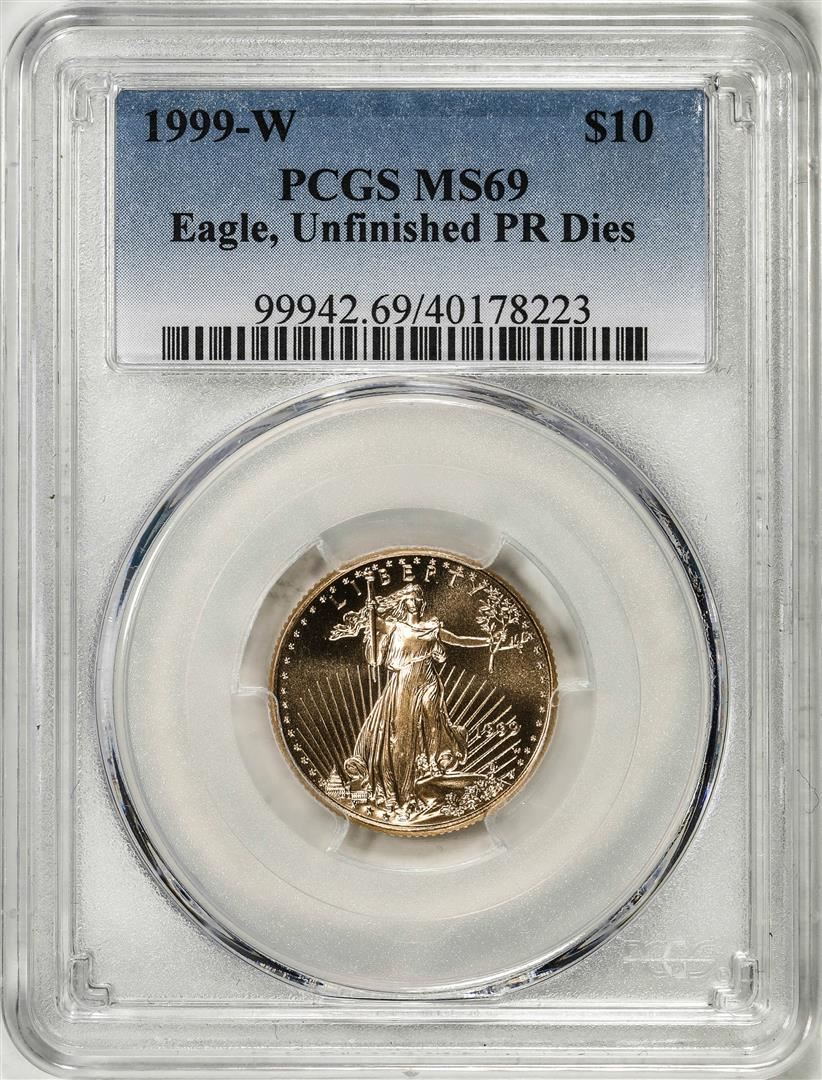 One 1999-W $10 American Gold Eagle Coin PCGS MS69 Unfinished Proof Dies. PCGS Graded.