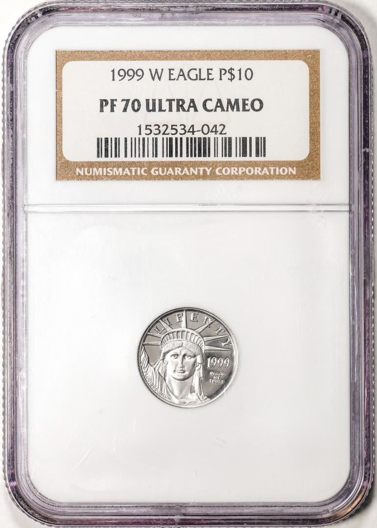 One 1999-W $10 Proof American Platinum Eagle Coin NGC PF70 Ultra Cameo. NGC Certified.