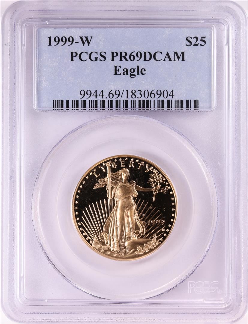 One 1999-W $25 Proof American Gold Eagle Coin PCGS PR69DCAM. PCGS Graded.