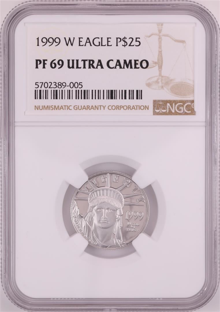 One 1999-W $25 Proof Platinum American Eagle Coin NGC PF69 Ultra Cameo. NGC Certified.