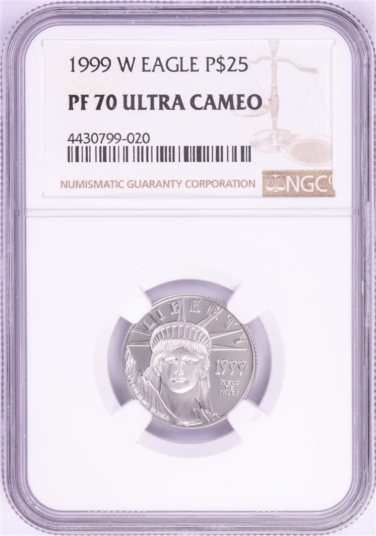 One 1999-W $25 Proof Platinum American Eagle Coin NGC PF70 Ultra Cameo. NGC Certified.