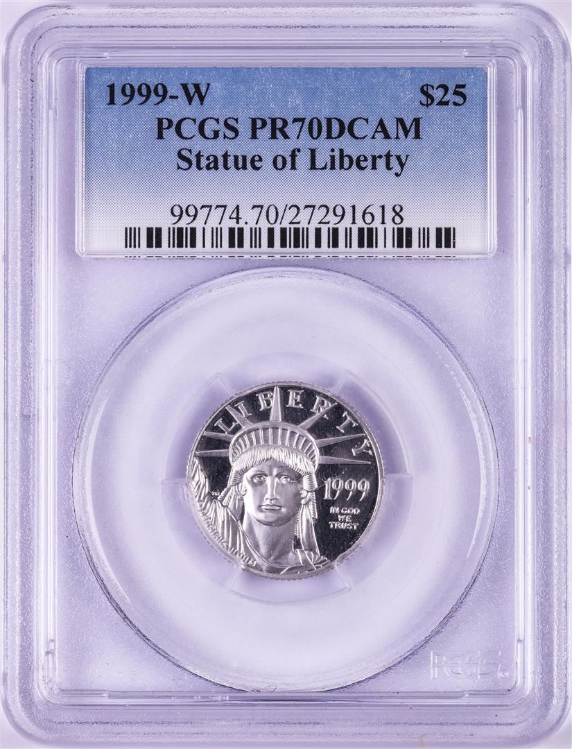 One 1999-W $25 Proof Platinum American Eagle Coin PCGS PR70DCAM. PCGS Graded.