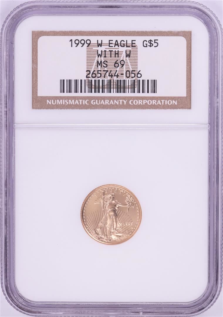 One 1999-W $5 American Gold Eagle Coin NGC MS69. NGC Certified.