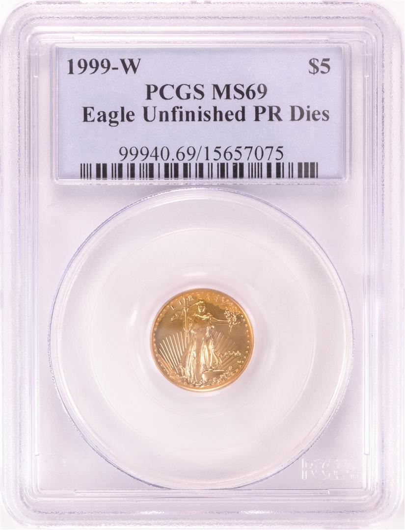 One 1999-W $5 American Gold Eagle Coin PCGS MS69 Unfinished PR Dies. PCGS Graded.