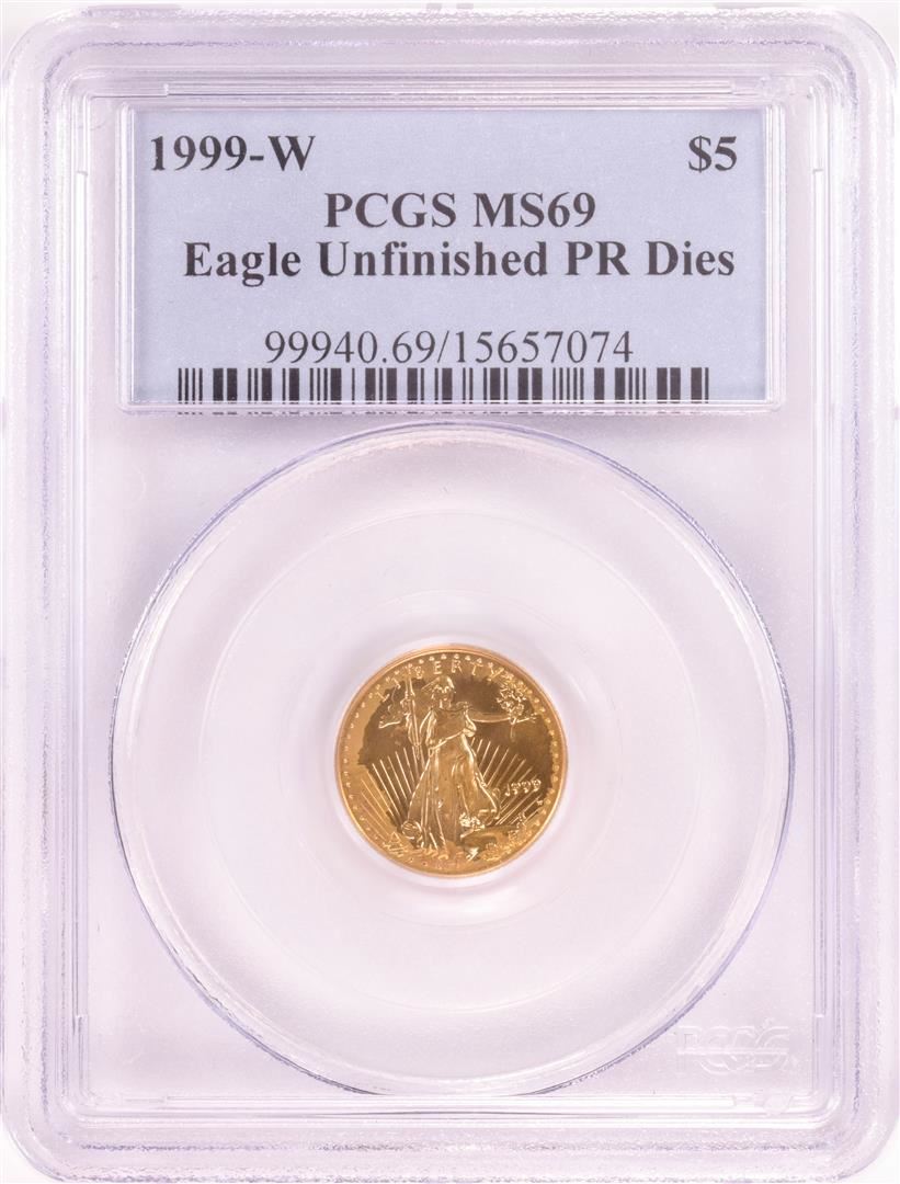 One 1999-W $5 American Gold Eagle Coin PCGS MS69 Unfinished PR Dies. PCGS Graded.