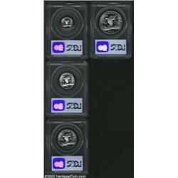 1999-W P$10 Tenth-Ounce Platinum Eagle PR69 Deep Cameo PCGS; 1999-W Quarter-Ounce Platinum Eagle PR69 Deep Cameo PCGS; 1999-W Half-Ounce Platinum Eagle PR69 Deep Cameo PCGS; and a 1999-W One Ounce Platinum Eagle PR69 Deep Cameo PCGS. A well matched set, all coins are starkly contrasted with virtually pristine features. 4 coins Important notice: We expect to be auctioning lots at the rate of 200-250 per hour. Sometimes eBay Premier live bid software cannot keep up with that pace, so we strongly recommend that you place a realistic proxy bid now as insurance to avoid disappointment. Also please note that all Heritage/CAA lots purchased through eBay Premier carry a 20% Buyer's Premium. Please make sure you read the Terms and Conditions.
