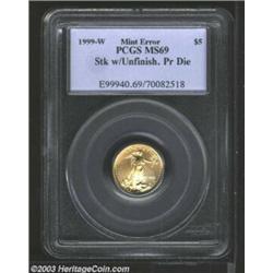 1999-W Tenth-Ounce Gold Eagle $5 --Struck with Unfinished Proof Dies--MS69 PCGS....