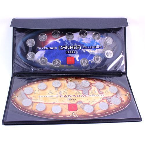 1999 and 2000 Canada 25-cent millennium commemorative boards issued by the RCM.