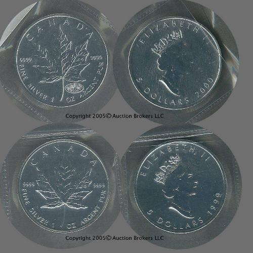 1999 and 2000 Canadian Maple Leaf silver coins; Each struck with 1 oz fine silver, limited mintage a